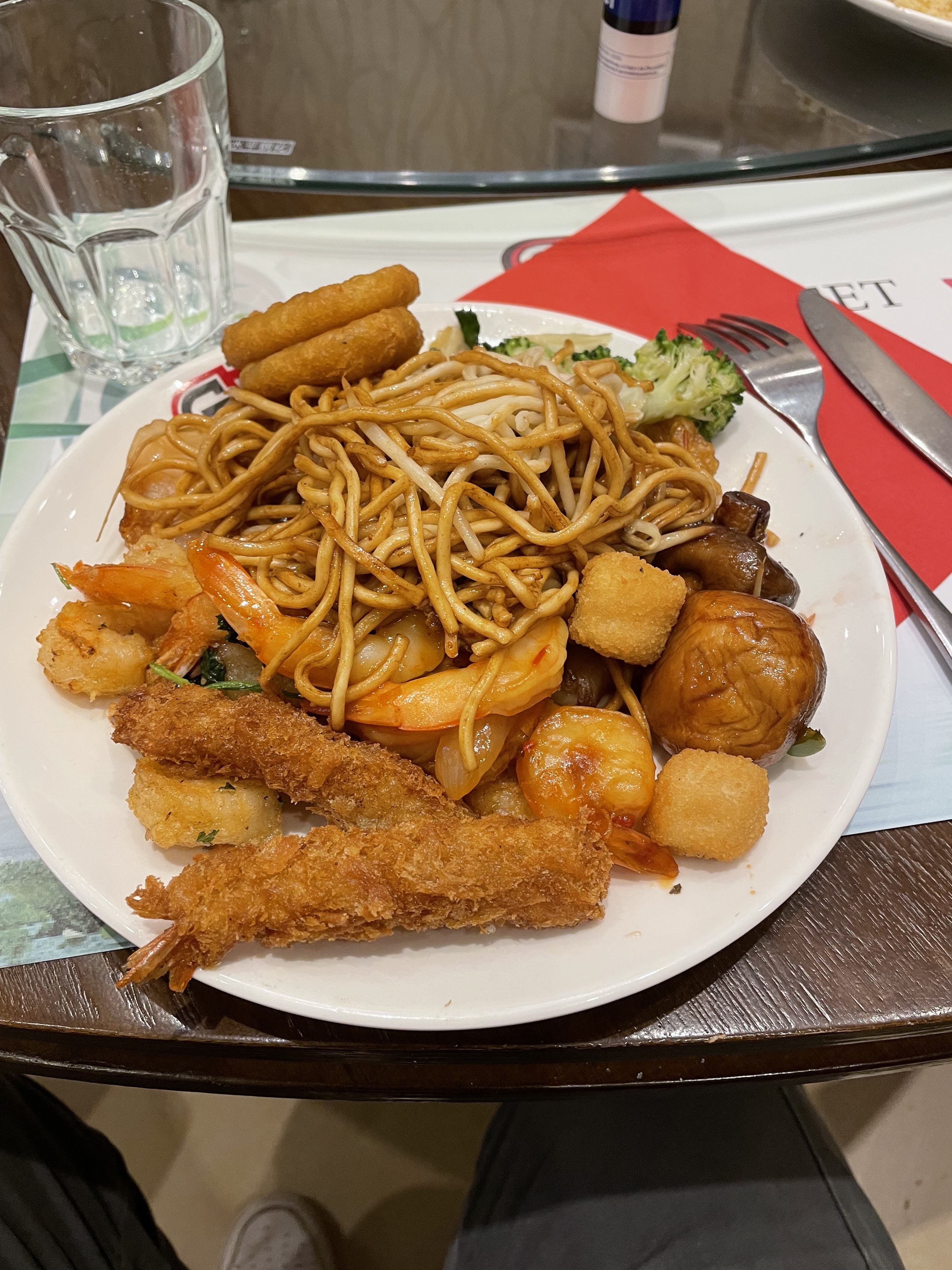 21 euros ! Cst trop cher au vu de la qualité médiocre des plats. Nouilles on dirait du plastique, boulettes mal cuites, pas de choix en nouilles, pizza surgelée mal décongelée, nems n’ont aucun goût, j’ai à peine mangé tellement tous était vraiment de basse qualité certaines viandes étaient dure. Enceinte j’ai fait une intoxication alimentaire! Vous vous rendez compte du danger ⚠️