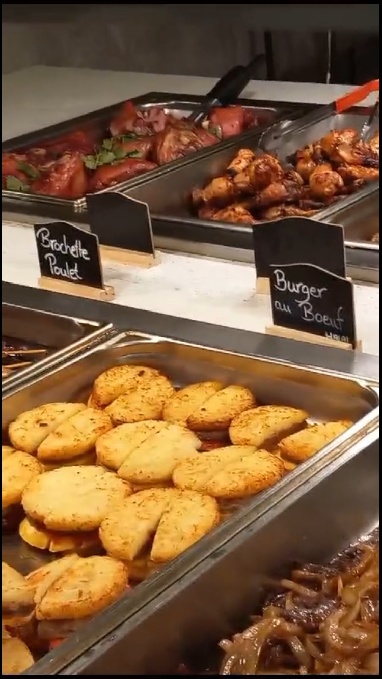 Restaurant Halal avec une diversité de buffets assez impressionnant ! J'ai voulu tester ce restaurant (20,90€. le buffet à volonté) et finalement je n'ai pas été emballé même si la quantité de plats et leur diversité reste importante. Le restaurant est très propre car tout neuf et les tables sont spacieuses. J'ai goutté de nombreux plats mais je n'ai hélas pas trouvé beaucoup de goût pour beaucoup d'entre eux, que ce soit continental ou asiatique. C'est un peu ce que l'on se fait d'un restaurant buffet à volonté mais là clairement, le rapport qualité/prix n'y ait pas, nous sommes plutôt factuellement sur un rapport quantité/prix. Quant au reste, je ne comprends pas pourquoi le restaurant n'indique pas plus précisément qu'il est Halal. Quelques produit ne le sont pas, mais c'est loin d'être la majorité. Pas que cela me dérange, mais ce serait mieux si c'était indiqué sur l'enseigne. D'ailleurs j'ai jne question car j'ai pris une entrecôte non Halal. Mais cela ne dérange pas de cuire une viande Halal après une cuisson de viande qui ne l'est pas ? Bizarre ce restaurant. Et concernant l'accueil, très moyen en terme d'amabilité et là l'ambiance dù à la fréquentation (emplacement et prix sûrement) laisse une ambiance assez anxiogène. En conclusion, buffets à volonté oui mais je n'aurai plus la volonté d'y aller, c'est certain 😅