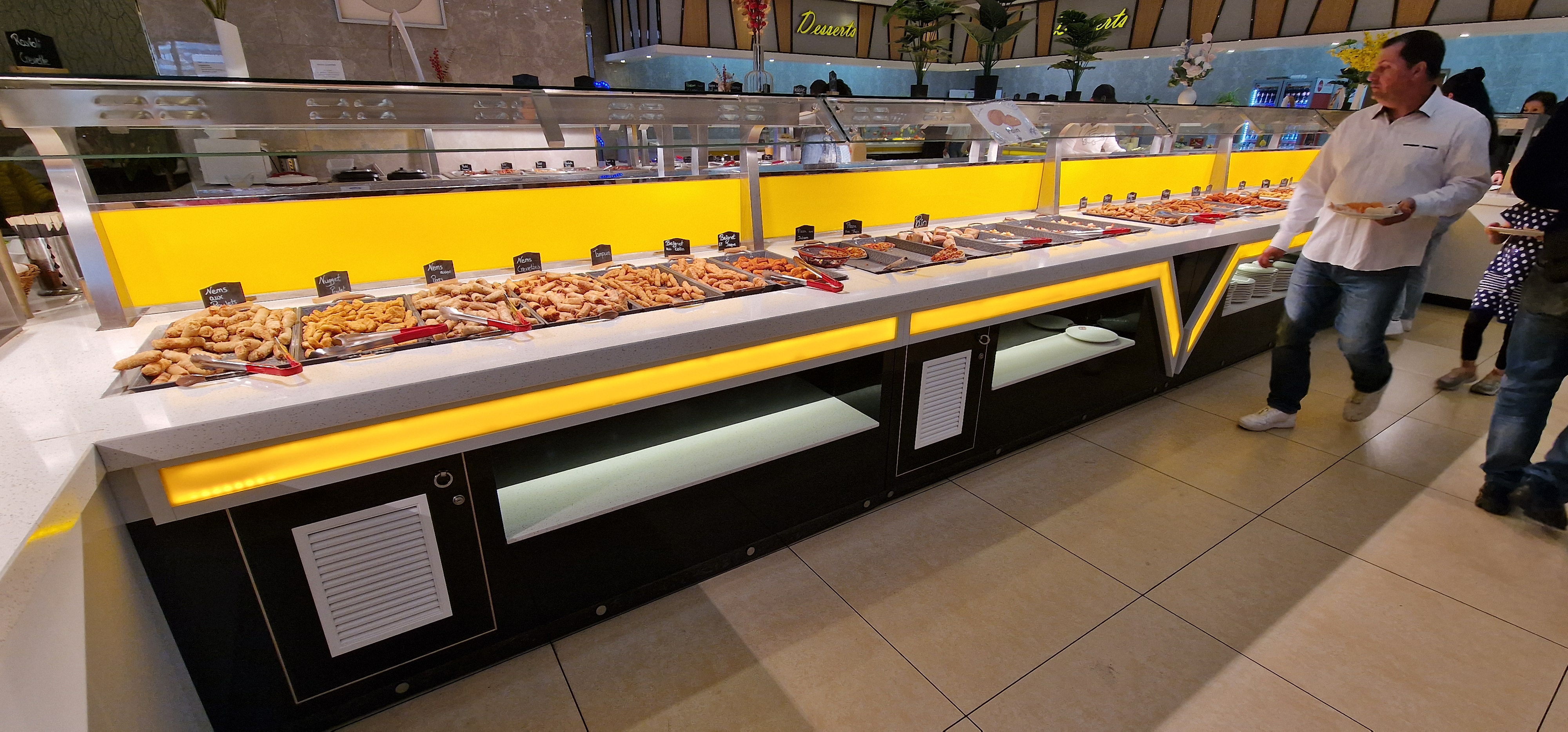 Résultat Très Fragile . La restauration est très mauvais , les buffets pour les sushis restent ouvertes sous aucune réaction de personne pouvant juste fermé ce buffet résultat les sushis sont pas frais mon père a goûter les bâtonnets de poulet caramélisés il a recraché de suite. La seul chose intéressante était le dessert. Franchement améliorer vous sur la restauration et essaye de faire des choses fait maison .