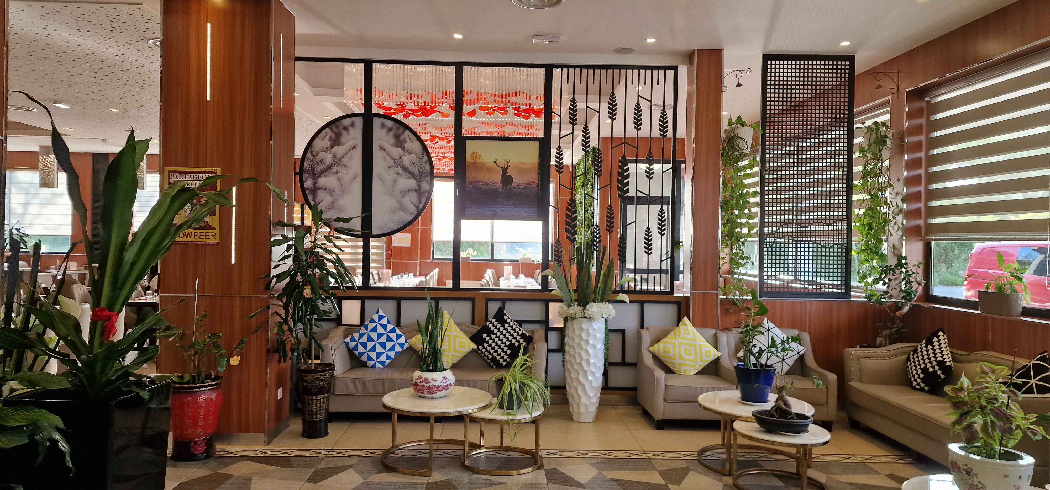 Tres jolie deco ...sa change de ses restos ou le clinquant grossier est de mise. Tres large choix . Le personnel est attentif et les règles d'hygiènes au niveau COVID sont très respectées. A voir par la suite ....