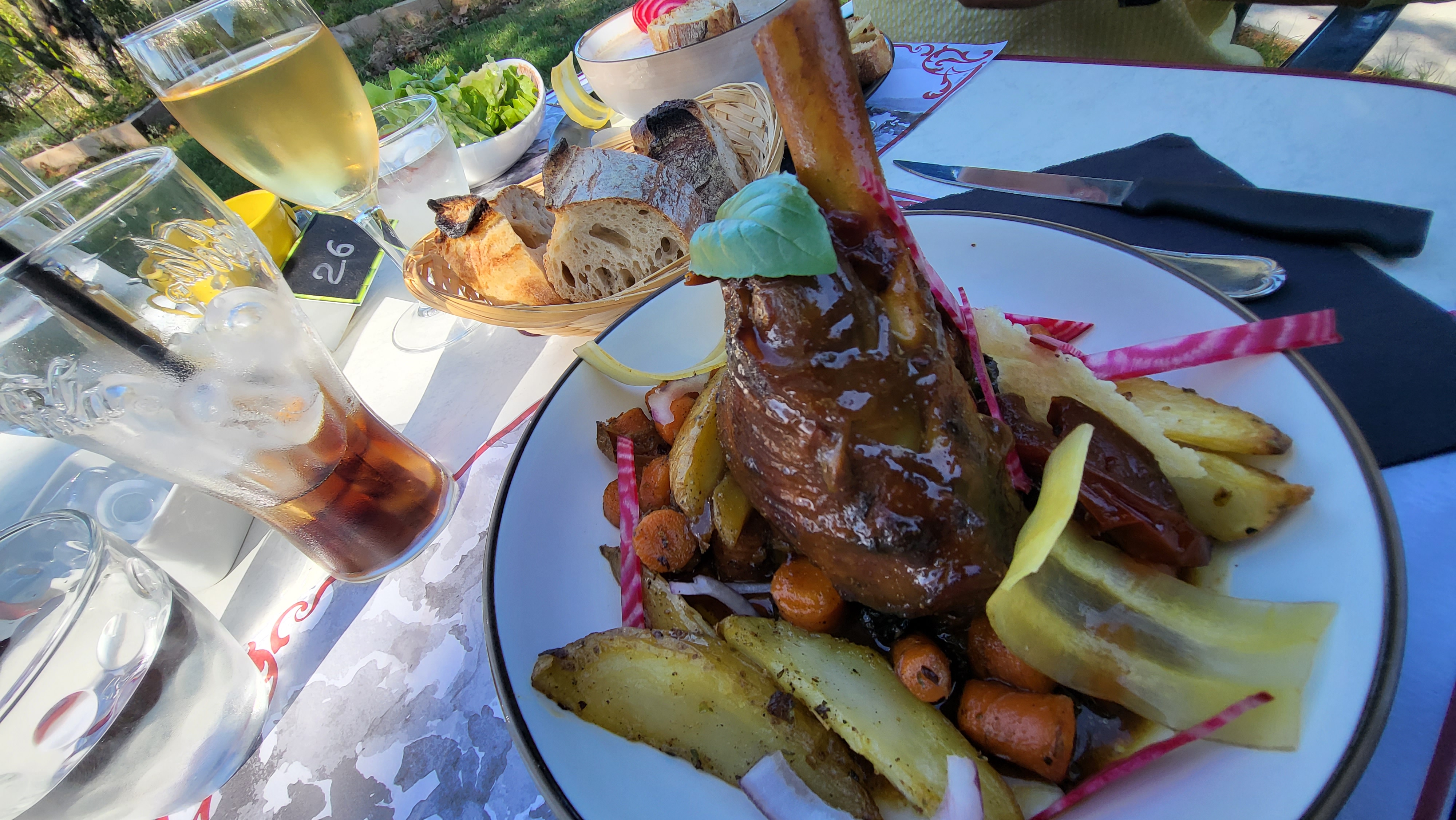 J'ai beaucoup apprécié la fraîcheur des produits de saison. Salade colorée et craquante. Pour la souris d'agneau elle est très copieuse accompagné de courgettes patates et aubergines et un jus de viande délicieux... Nous l'avons saucé avec du pain jusqu'à la fin