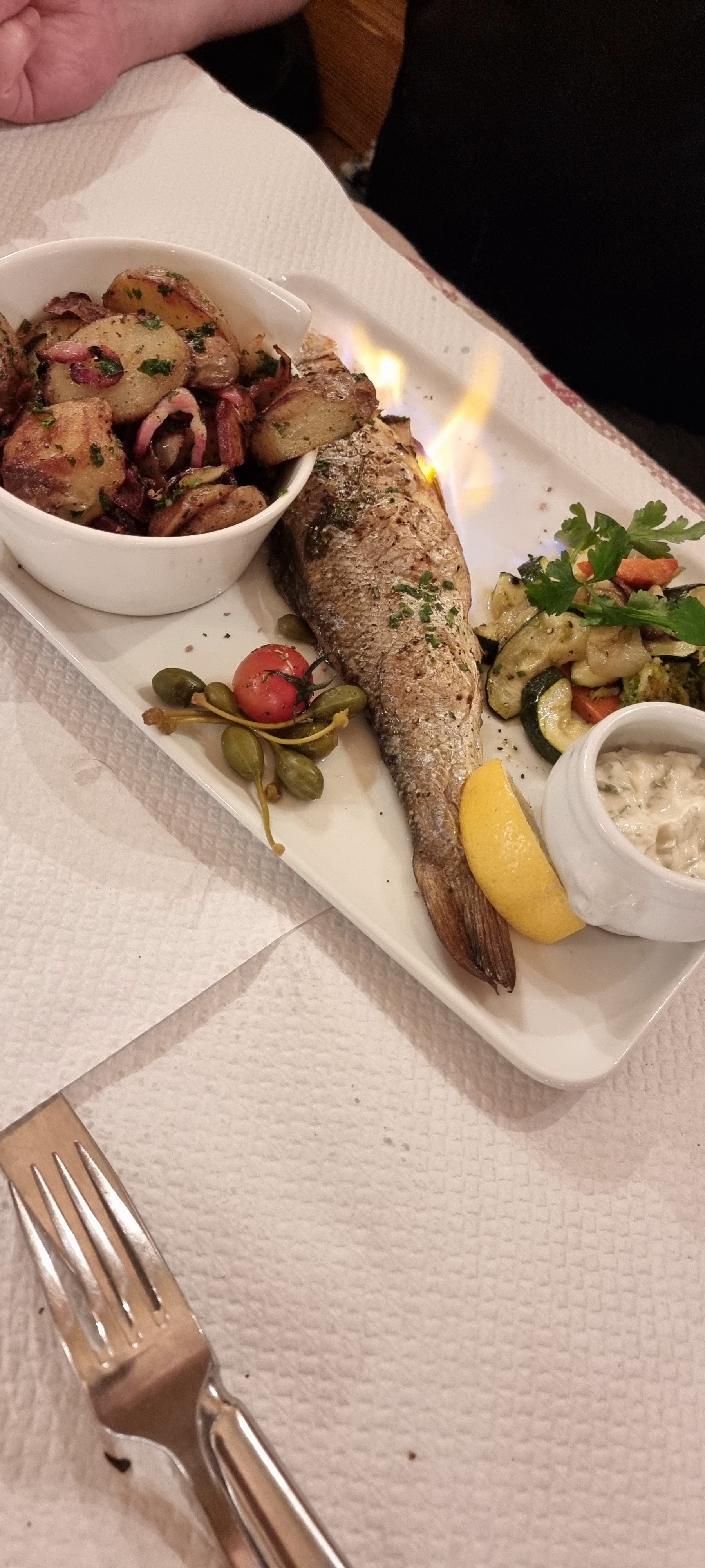 J'ai tjrs apprécié ce restaurant et ai même très conseillé aux gens. hier décesoir,grosse déception.Attablés avec mes amis sous une tente aménagée, hors du restaurant et surchauffée avec résistances dirigés en pleine face, présentation et servi froid.Attention ,aux patrons,de ne pas baisser votre qualité, à tout points vues.Je reviendrai mais pas tout de suite 😟😟😟
