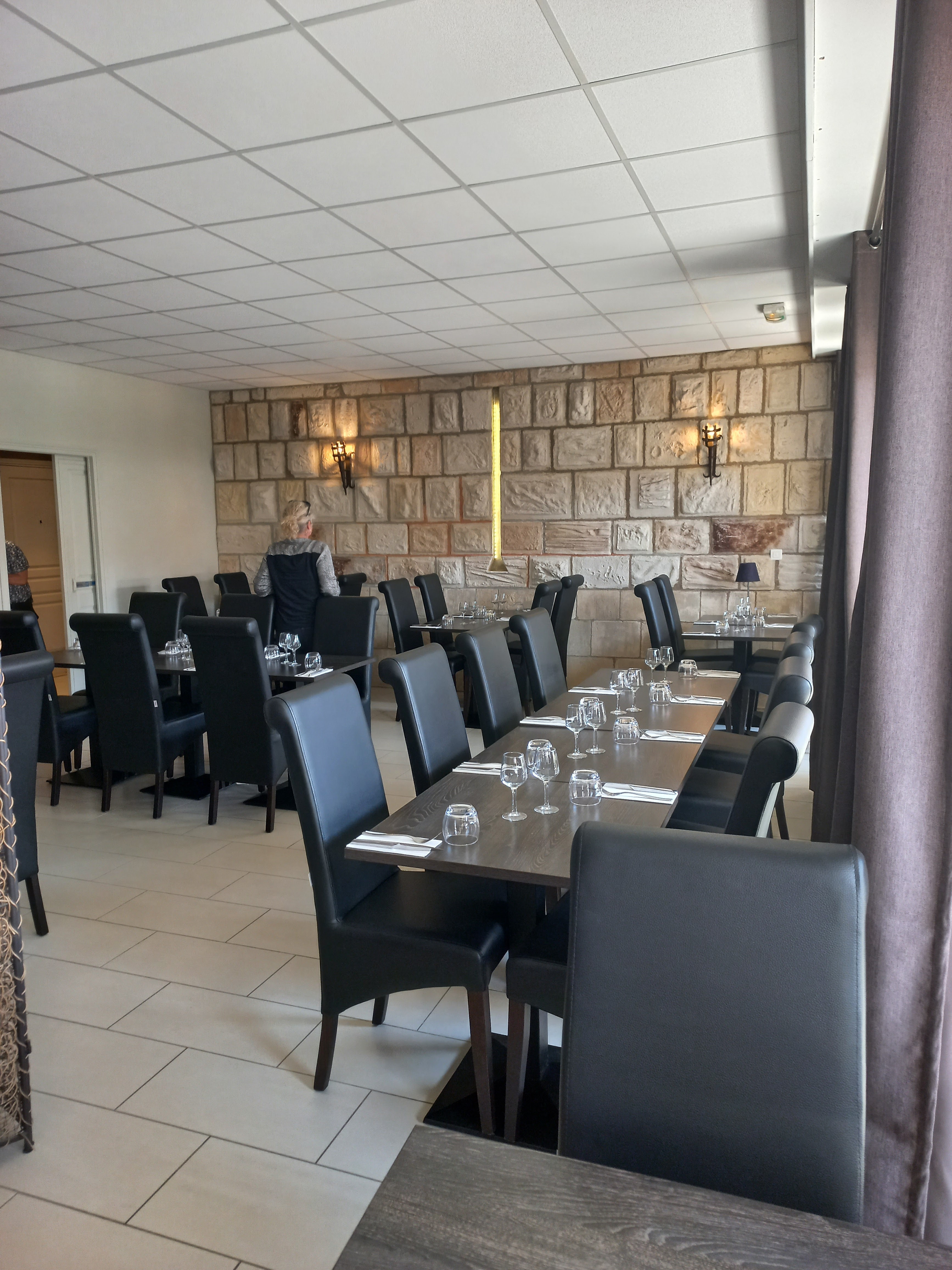 En ce jour de fête locale le restaurant était complet, la salle etant petite nous étions un peu à l'étroit mais c'était ok,en entrée le flan de gambas semblait réchauffé heureusement l'accompagnement était agréable, le feuilleté de macreuse enveloppé dans une feuille de brick fibreux et sec, le dessert poire belle Hélène correct bien que la glace vanille et la chantilly sont très rationnés. Rapport qualité prix (36€) vin compris un peu élevé à mon avis.