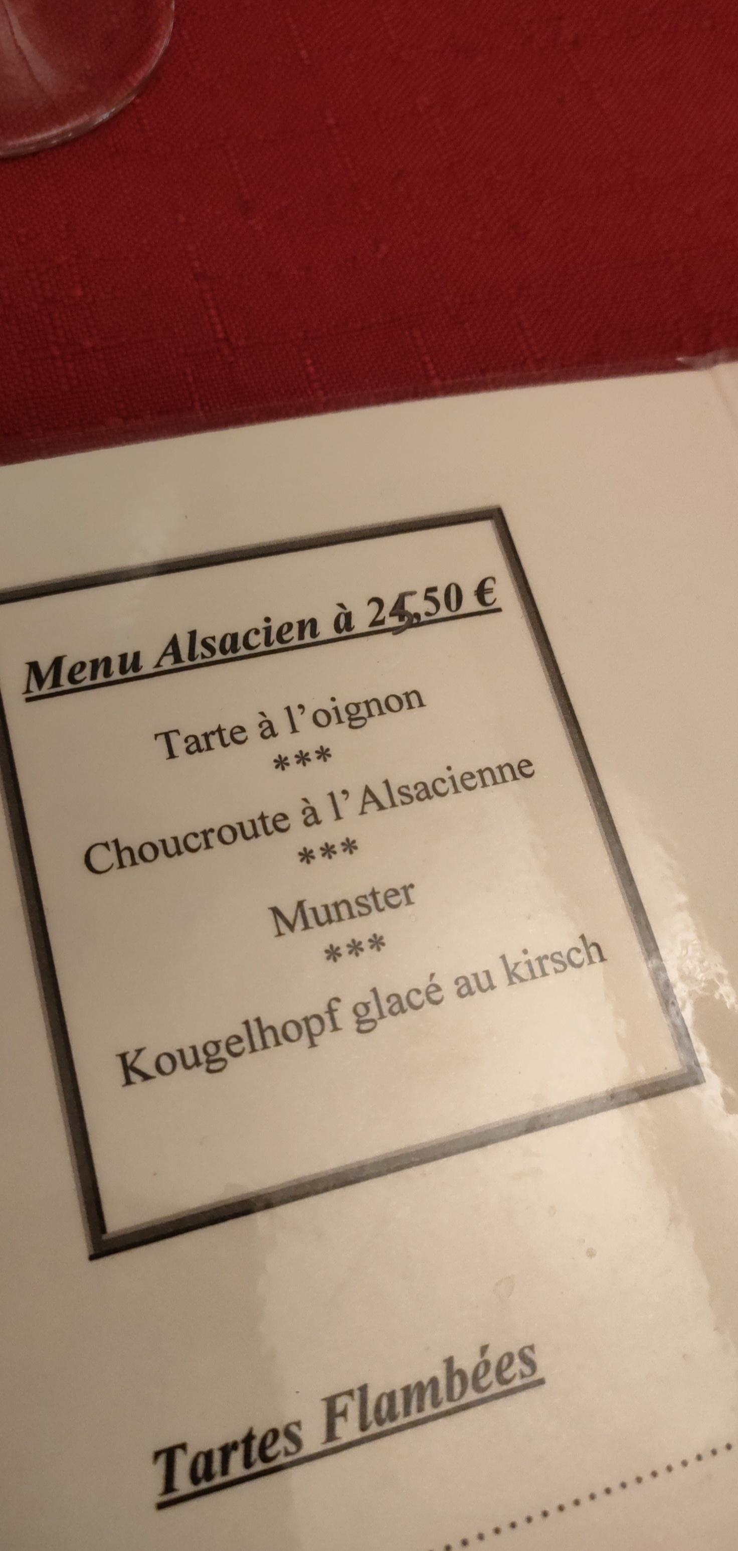 c est toujours un plaisir de s'arrêter manger typiquement alsacien dans ce restaurant. le cadre est vraiment agréable, l'accueil est sympathique. le menu alsacien est une valeur sûre avec des produits de qualité !!+