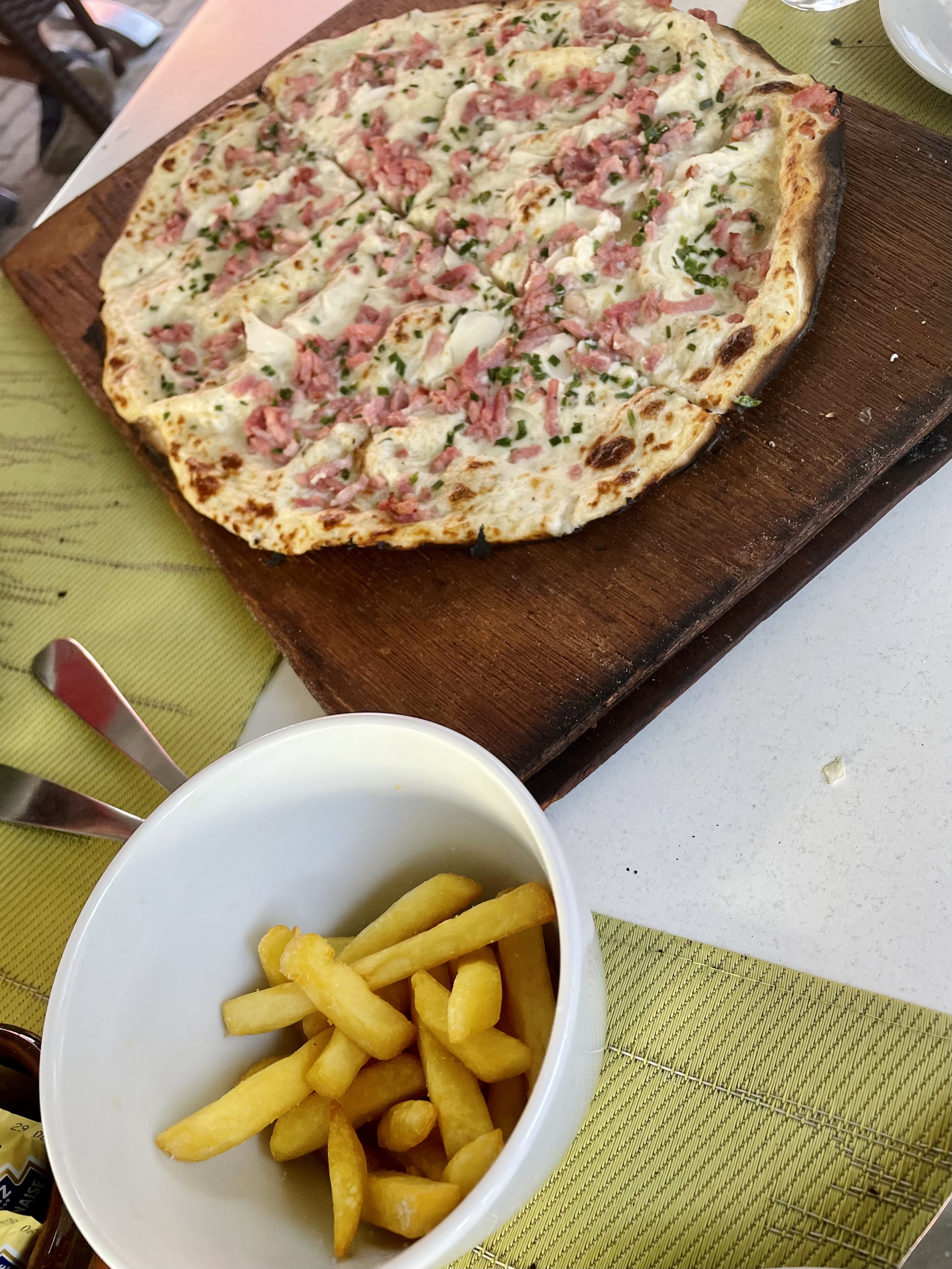Avons très bien mangé de la tarte flambée de toutes sortes. Les suggestions étaient également appétissantes.