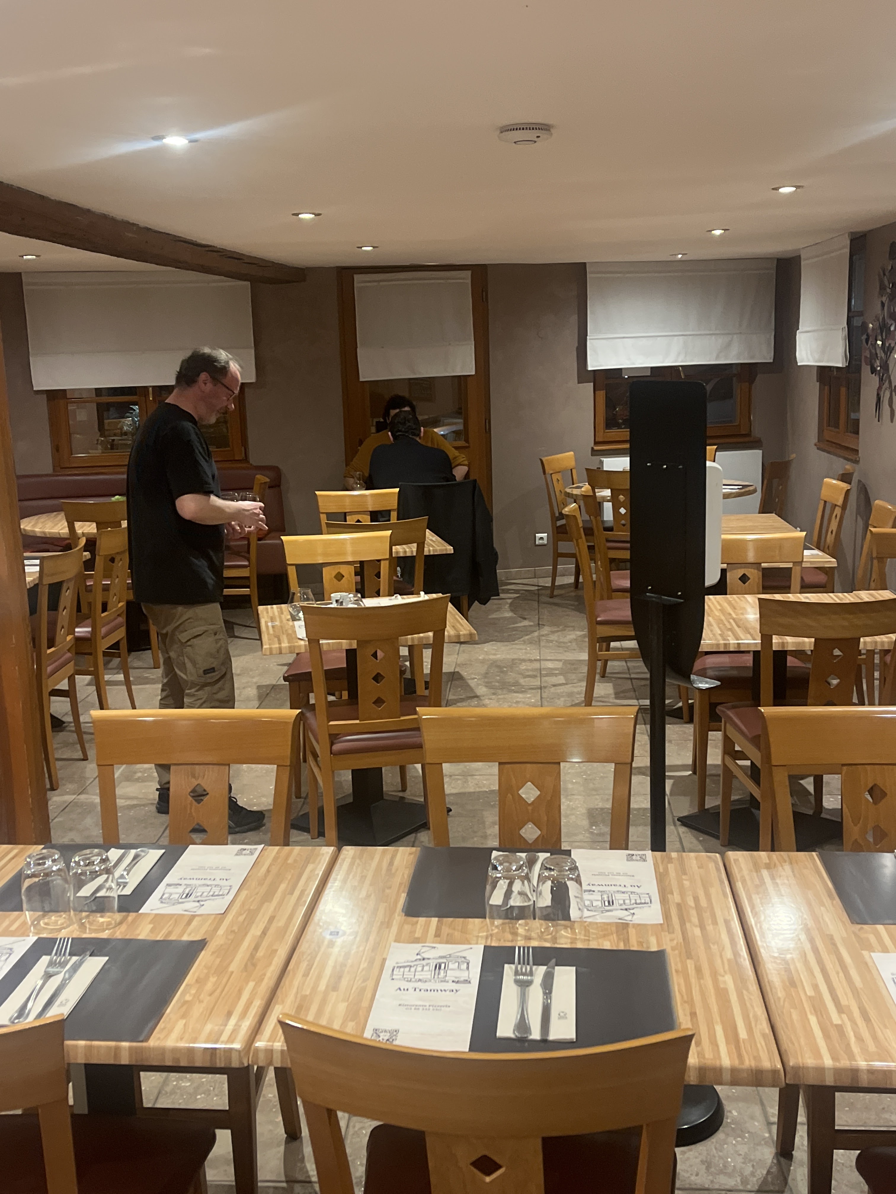 Restaurant familial où l'on est très bien accueilli, où l'on mange bien et où le cadre est très agréable (surtout en été, quand on peut profiter de la terrasse). Les plats du jour sont très bons, bien servis et pour une somme très raisonnable. Nous recommandons vivement le restaurant Au Tramway.