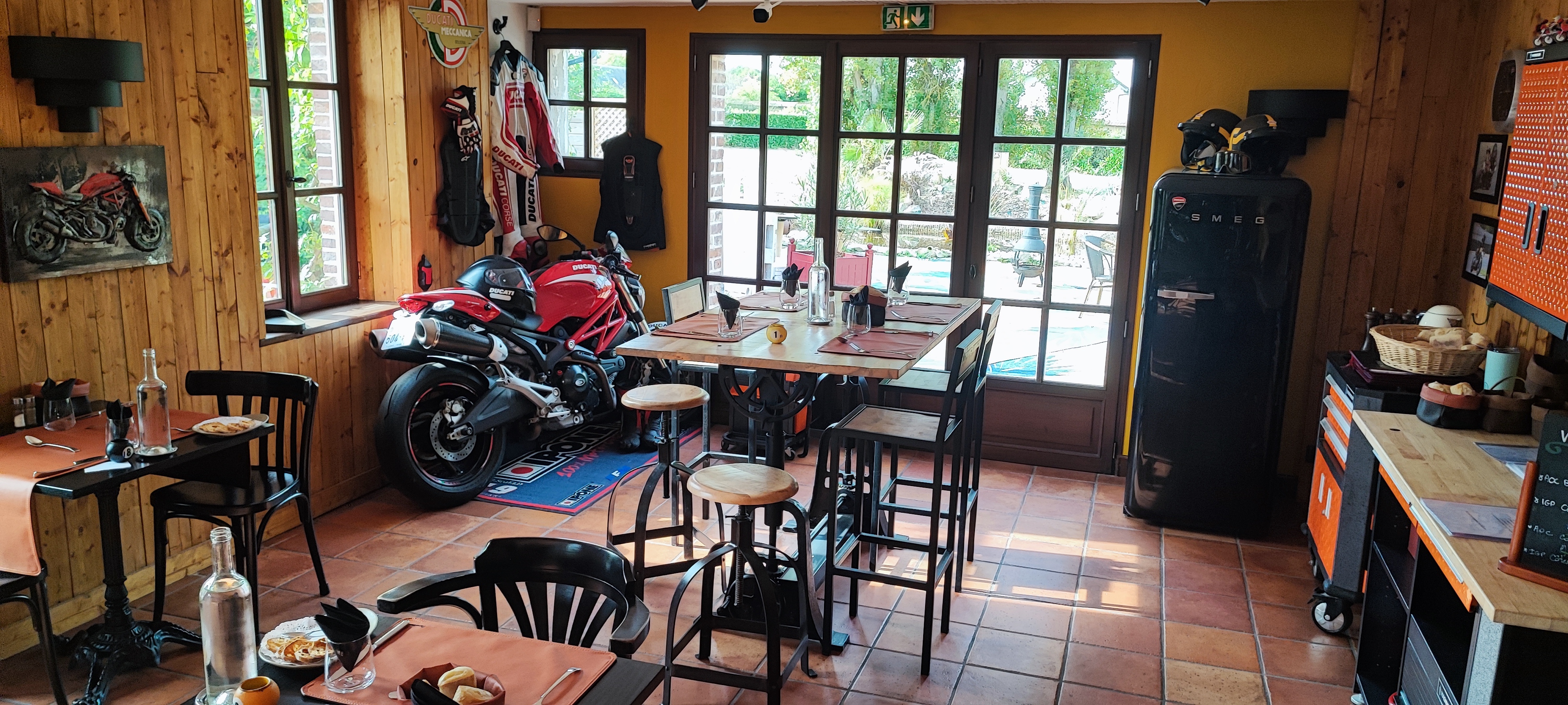 Accueil très sympathique dans un cadre qui change et attire l'oeil pour les amateurs de moto. Cuisine, rien a dire et l'idée de l'entrée l'entrée des indécis est géniale. Le fait aussi d'aller choisir et ouvrir son vin dans la cave est un bon concept. J'aurais aimé un seau à glace pour le vin blanc, que les assiettes soient chaudes et que les bannettes de pain soient remplies. Côté cuisson, c'était parfait tout comme la rapidité de service malgré le monde qu'il y avait. Le sourire et l'amabilité des serveurs sont a montrer à d'autres établissements. Nous reviendrons.