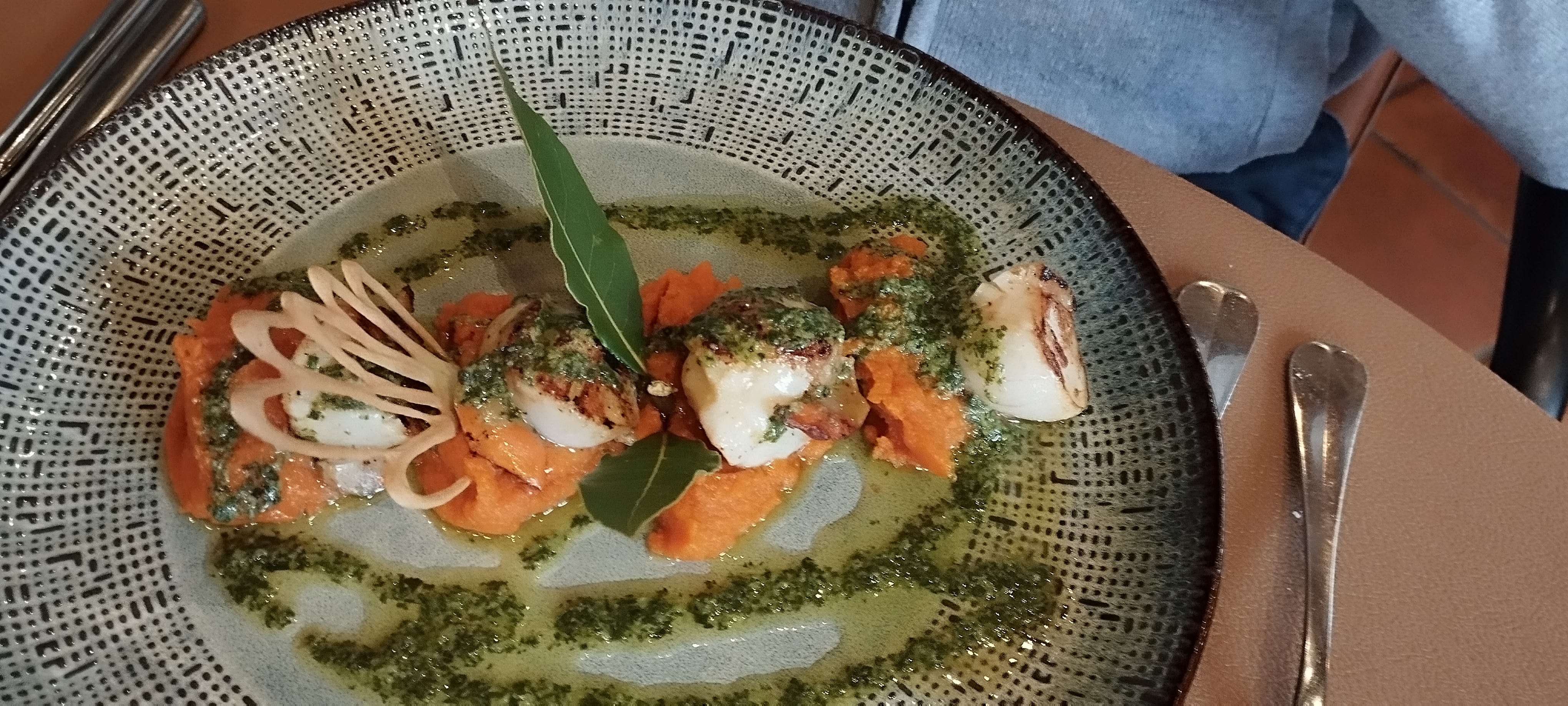 super restaurant , présentation magnifique et délicieuse . Personnel très sympa , souriant et avenant . Nous fêtions nos 48 ans de mariage et avons été ravis