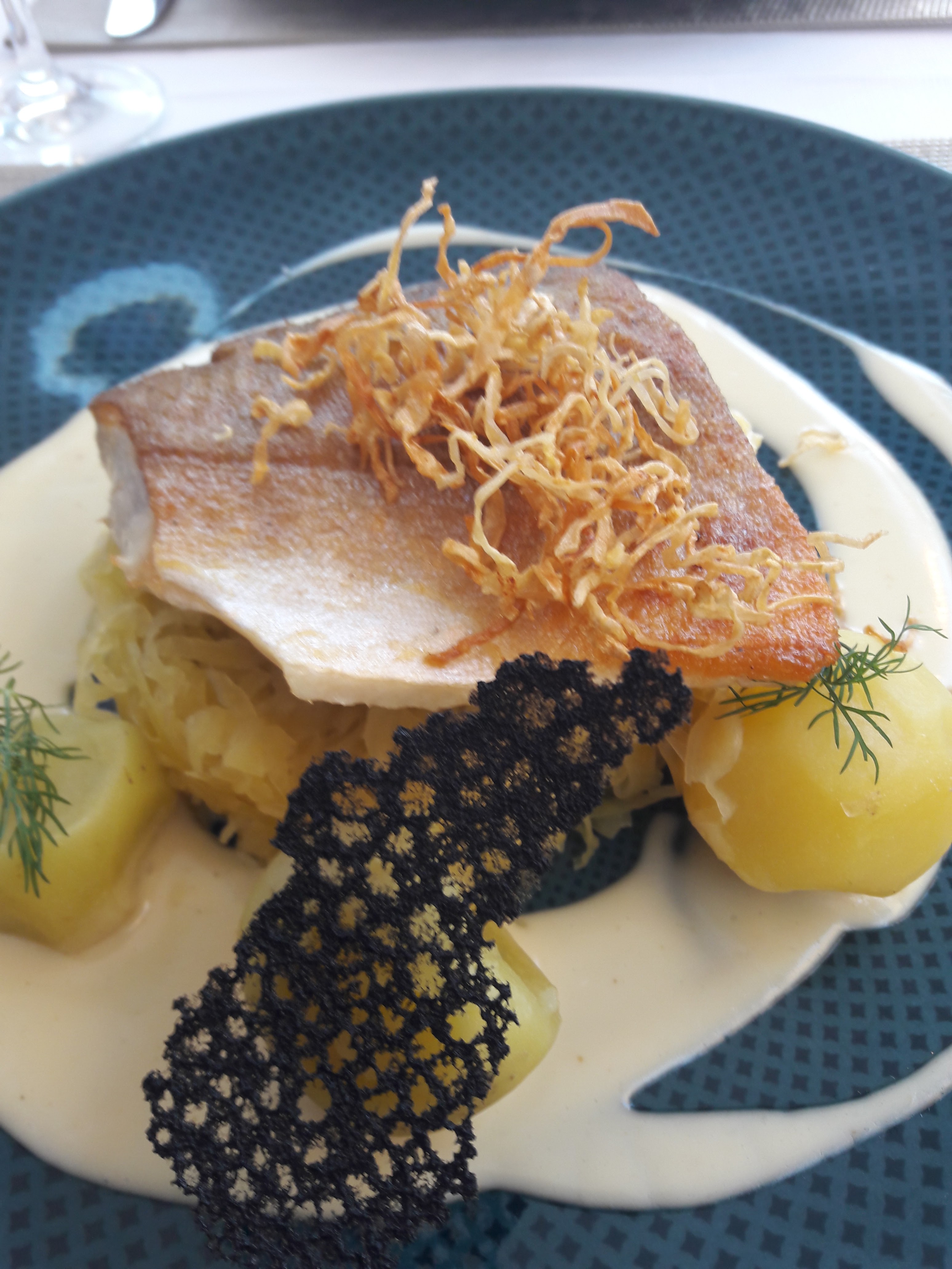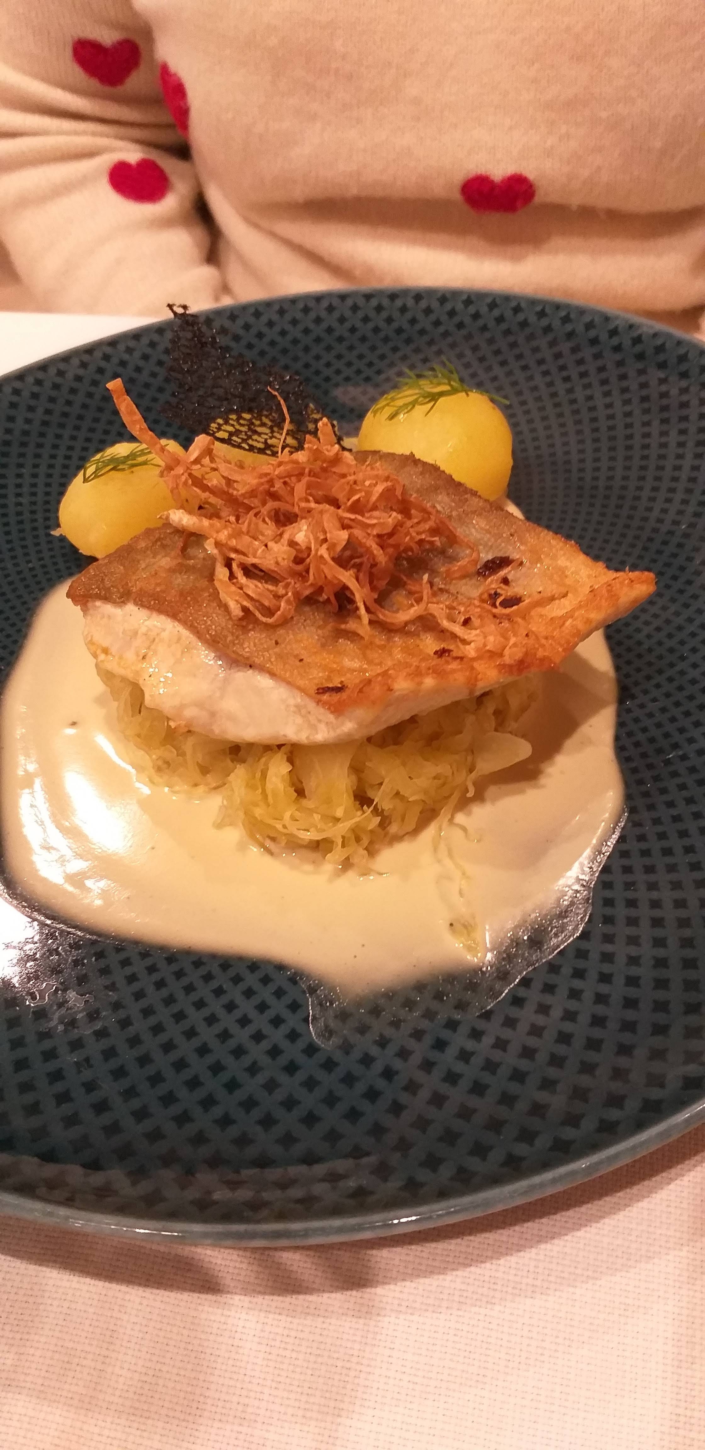ravie de l'accueil et du sourire de la serveuse qui est venue échanger quelques mots sympathiques avec moi (j'y étais seule et merci d'avoir accepter une table solo, ce n'est pas toujours le cas..) omble chevalier sur un lit de choucroute safrané, c'était gouteux. Dessert aux pommes savoureux et j'ai bien aimé l'ambiance en général : sympathique, rapide, efficace. J'aime cette ALSACE là!