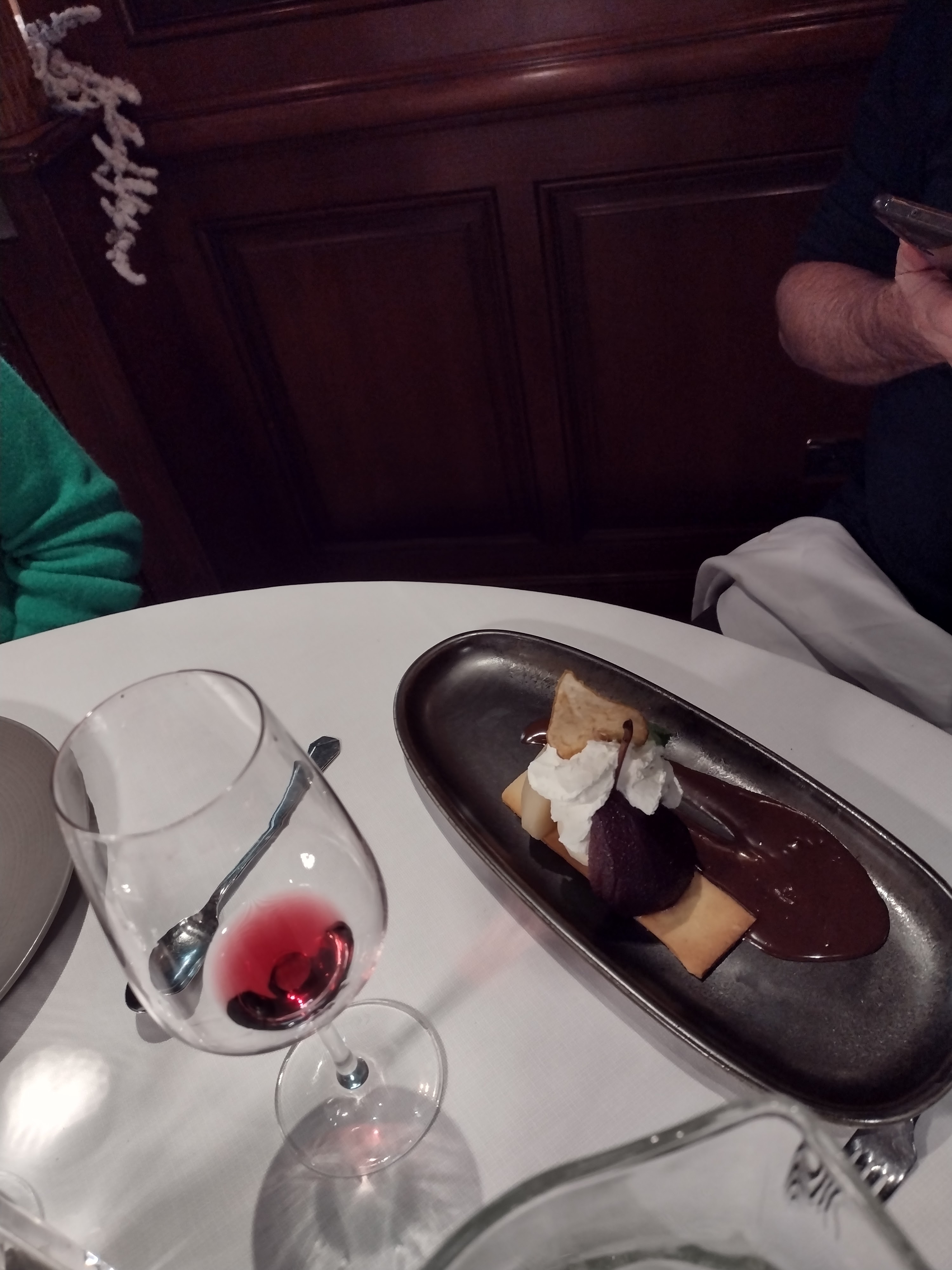 Ne vaut vraiment pas la peine ni le prix… Surtout quand on ne vous présente pas les vins et qu’on ne vous les fait pas goûter. Sans parler du serveur qui a employé un ton hautain lorsque j’ai demandé un dessert qu’il fallait commander en début de repas. Je précise que j’ai voulu donner mon dessert lors des entrées mais il m’a dit « on verra plus tard ». Dans ce cas là, informez les clients dès leur arrivée c’est aussi ça être serveur, conseiller et connaître la carte. J’ai travaillé en vente et je ne trouve pas que ce genre de comportement soit approprié vis-à-vis des clients. Je n’y remettrai plus les pieds.