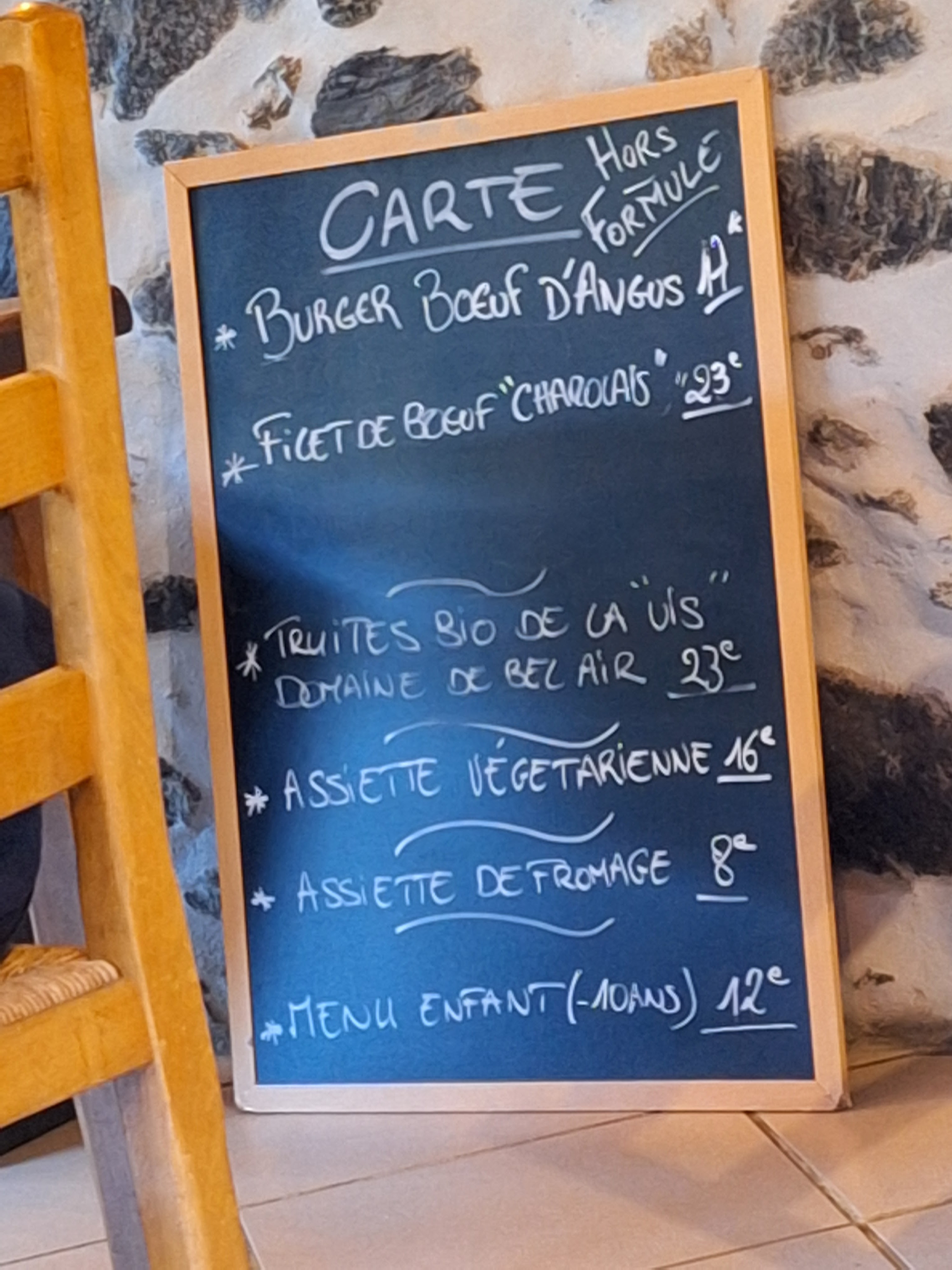 La carte courte est excellente et la cuisine est raffinée. Toujours un choix de poissons et un plat qui change quotidiennement. Menu très abordable et excellents vins pour un prix raisonnable. Belle terrasse au bord de la rivière. Très bon service qui nous a également montré un chemin d'une beauté inoubliable pour retourner au camping le Mouretou.