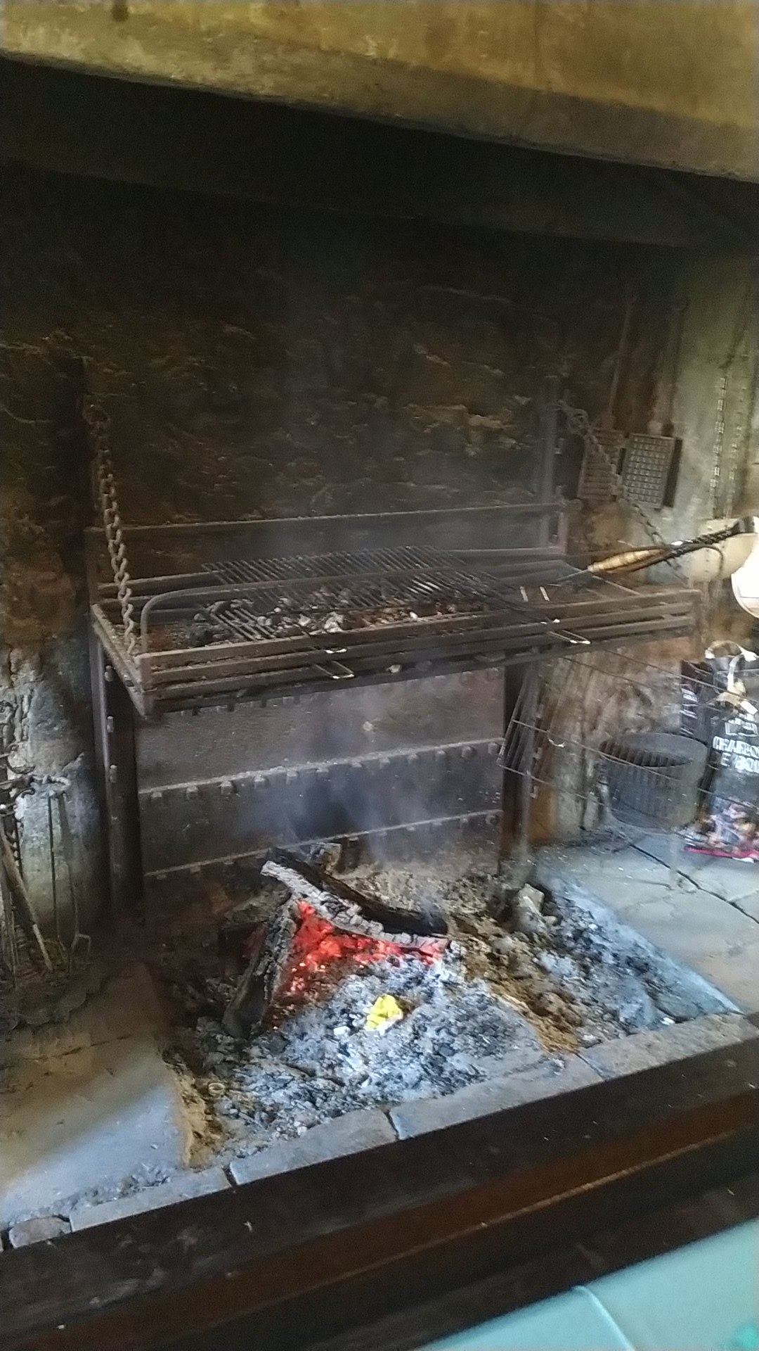 Endroit resté dans son jus... très belle pièce avec cheminée moyenne ageuse, vitraux, pierres ,tomettes et cuisine traditionnelle. Très bien accueillis.