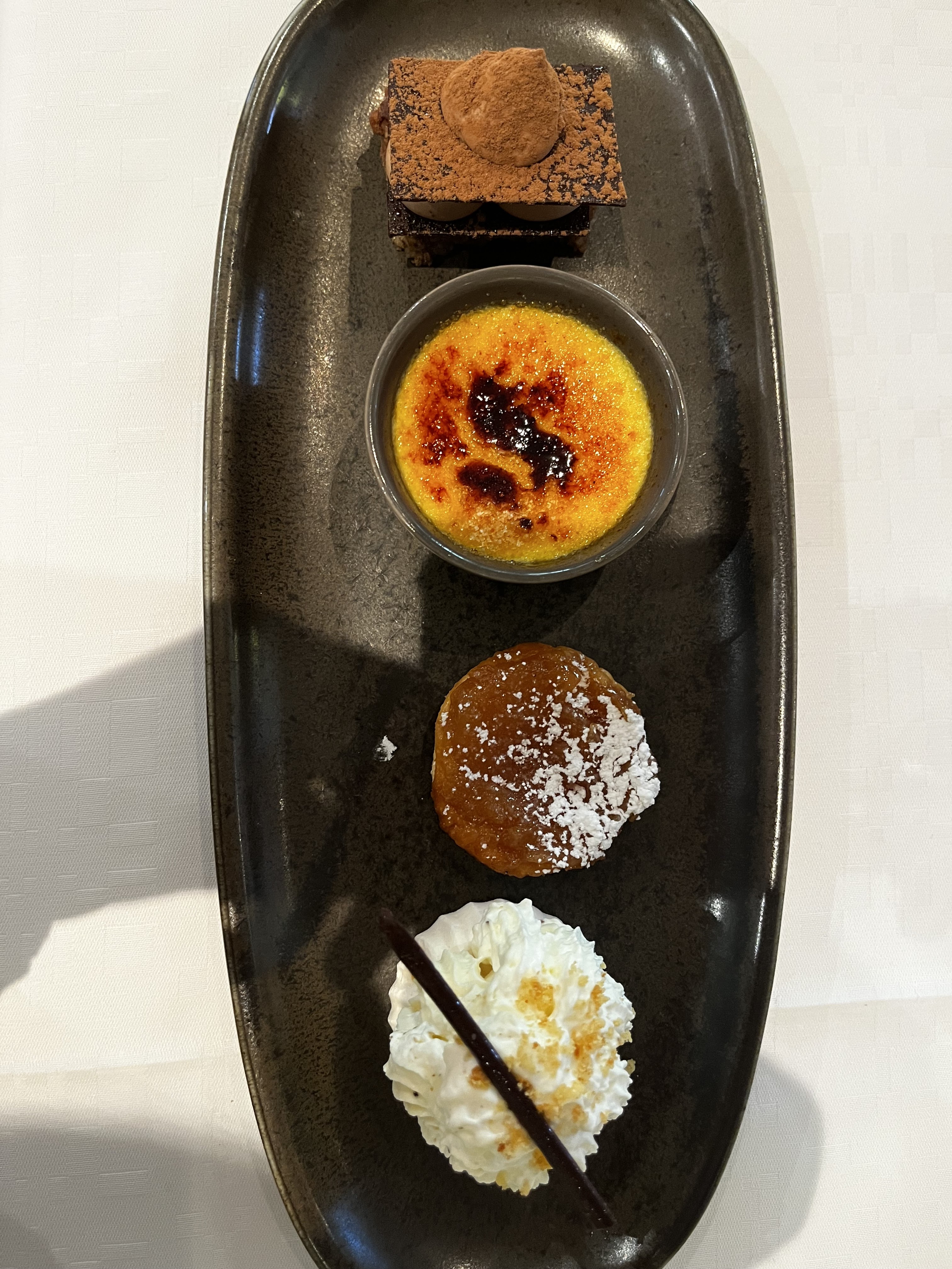 Décoration simpliste Assez froid à l’intérieur Pas de miniardise entre les plats, pas digne d’un gastronomique Service au top Repas excellents et bien servis Petits desserts pour le prix mais reste très bon