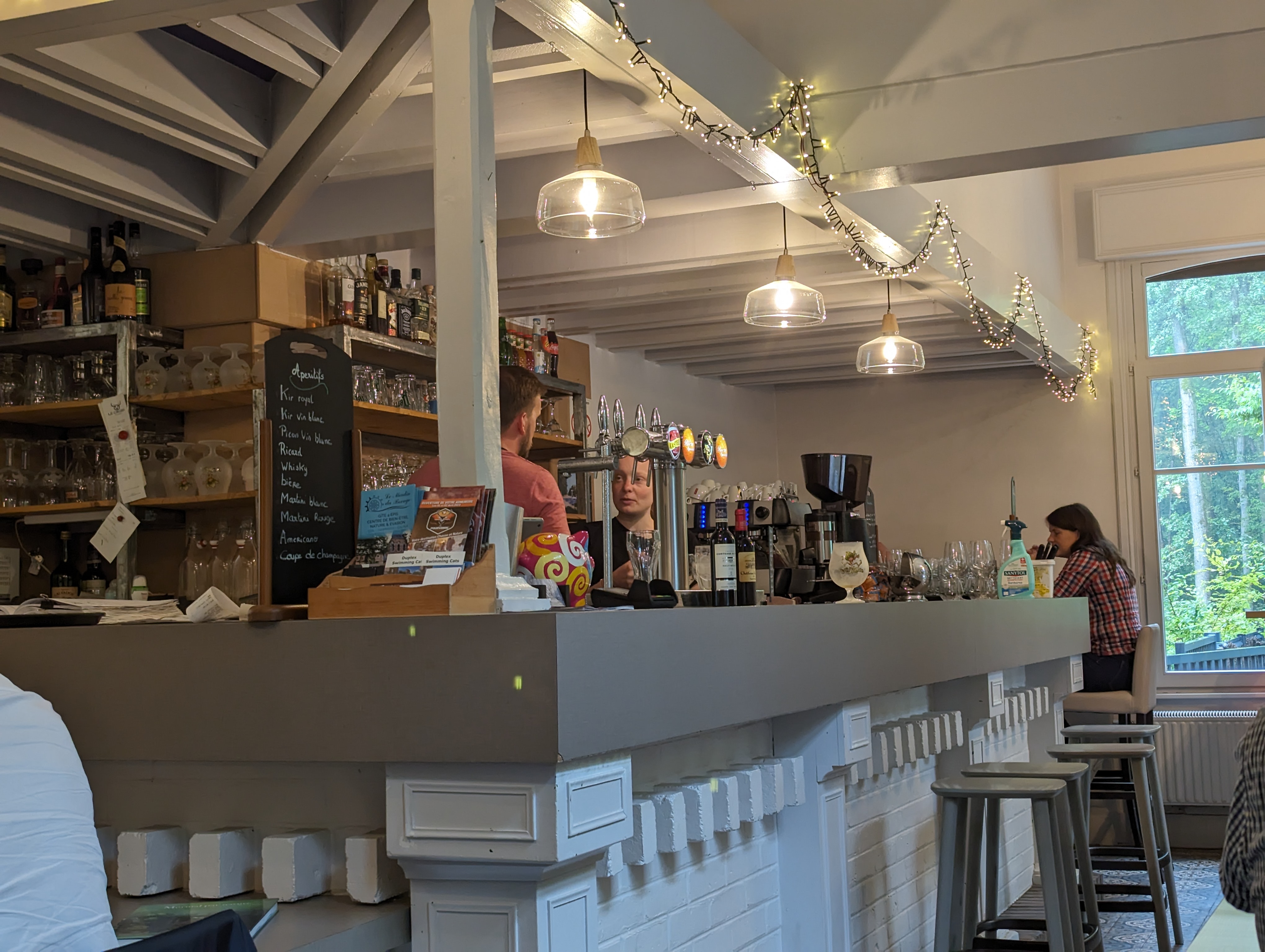 Un dimanche après-midi, une Troll pression en terrasse au soleil au milieu de la forêt, serveur très sympathique, le seul bémol, la tarte maison, j’attendais mieux. Sinon super cadre