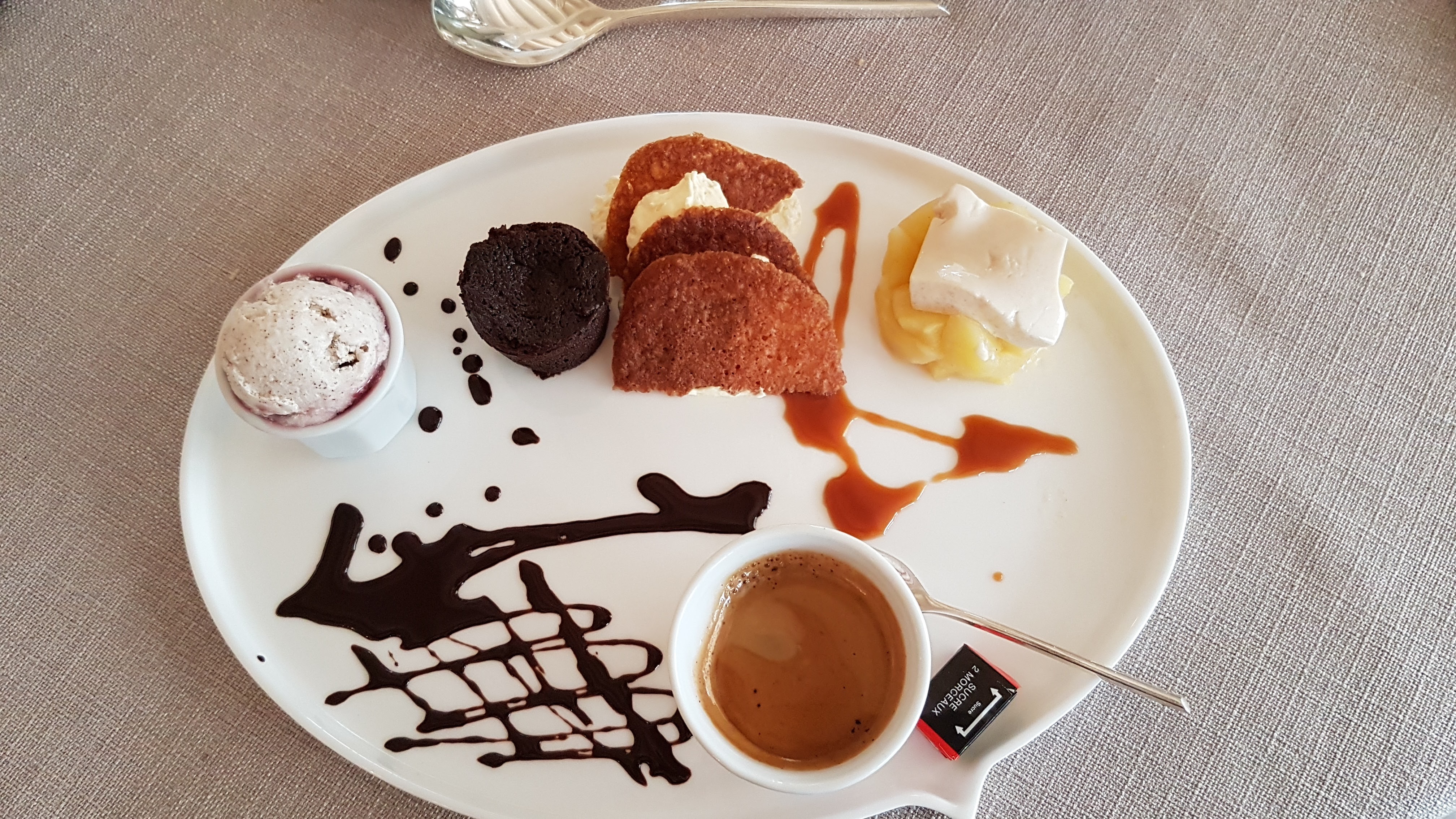 Repas parfait, de la vraie gastronomie, mais concernant l'accueil, il n'est pas le même suivant les clients à priori. Nous n'avons pas eu le droit, comme pour les trois autres tables, à une petite attention de la part de la responsable de l'établissement. Dommage