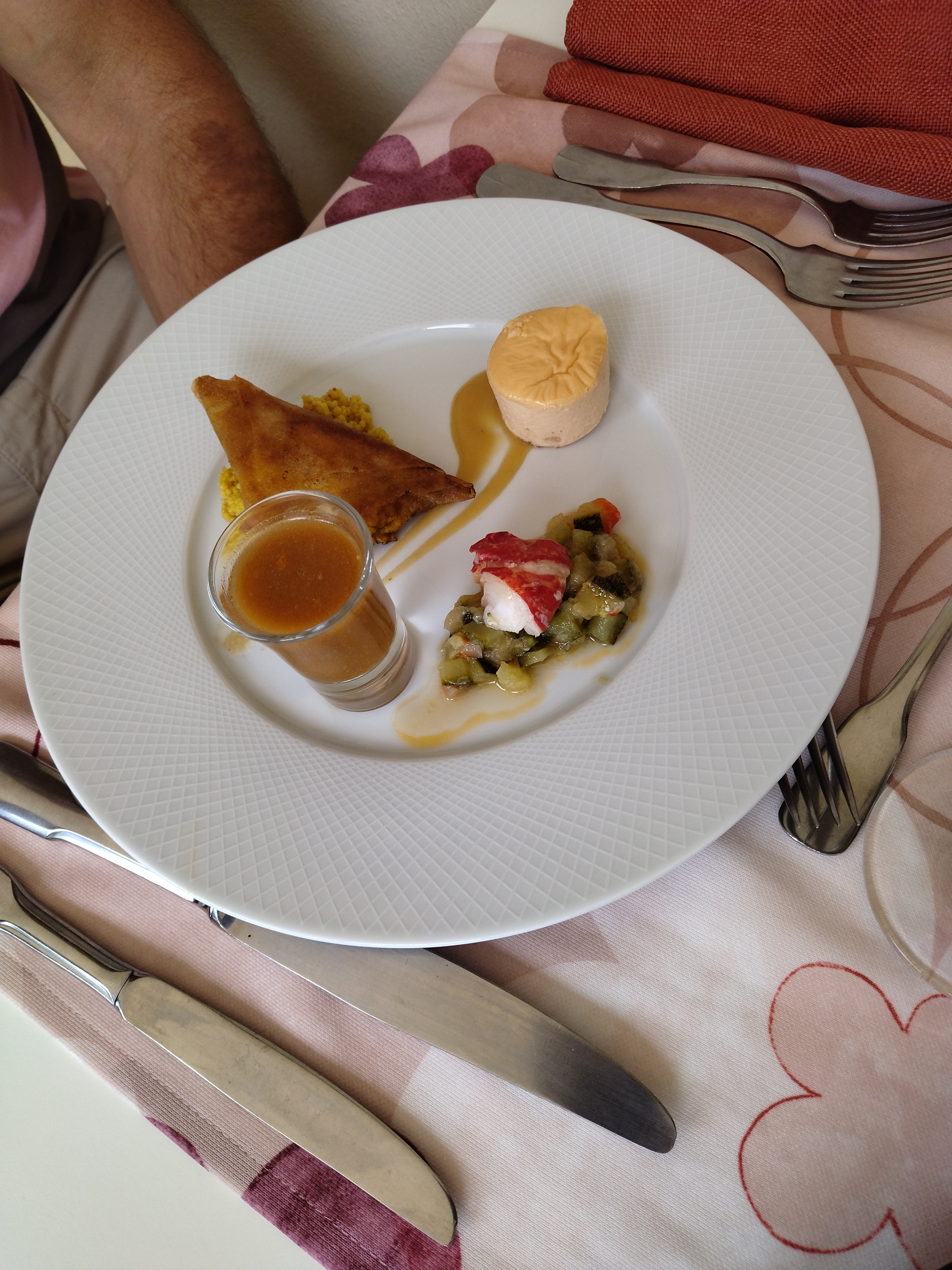 Ensemble décevant... Entrée : St jacques sur-cuites voire surgelées - Plat : Homard et ses petits légumes : homard caoutchouteux - Croustillant de brie sans saveur et pour finir un moelleux au chocolat fade et insipide ! (comparable à de l'industriel!). Malgré tout le vin était de qualité! Le tout pour la modique somme de 110Euros pour deux ! A éviter pour tous les amateurs de vrai gastronomie !!