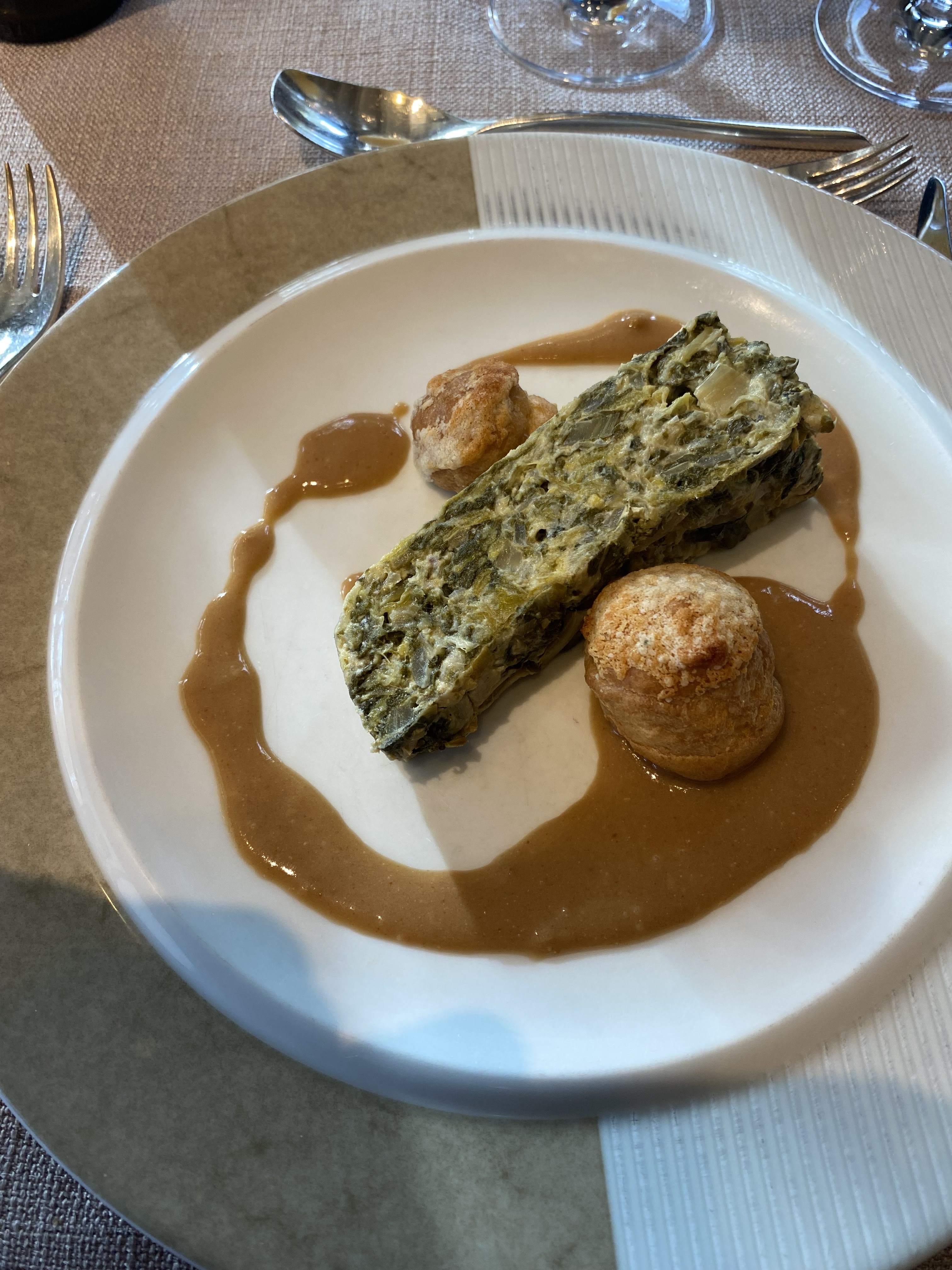Perdonnel parfait, élégant, aimable et discret. Cadre raffiné et salle non bruyante avec une douce vue sur le lac et les canards. Cuisine de qualité avec une belle présentation et de bonnes saveurs et juste ce qu'il faut en quantité. Merci au chef pour avoir changer son entrée pour respecter nos goûts. Le vin blanc de Gascogne est sublime. Merci pour cet agréable moment.