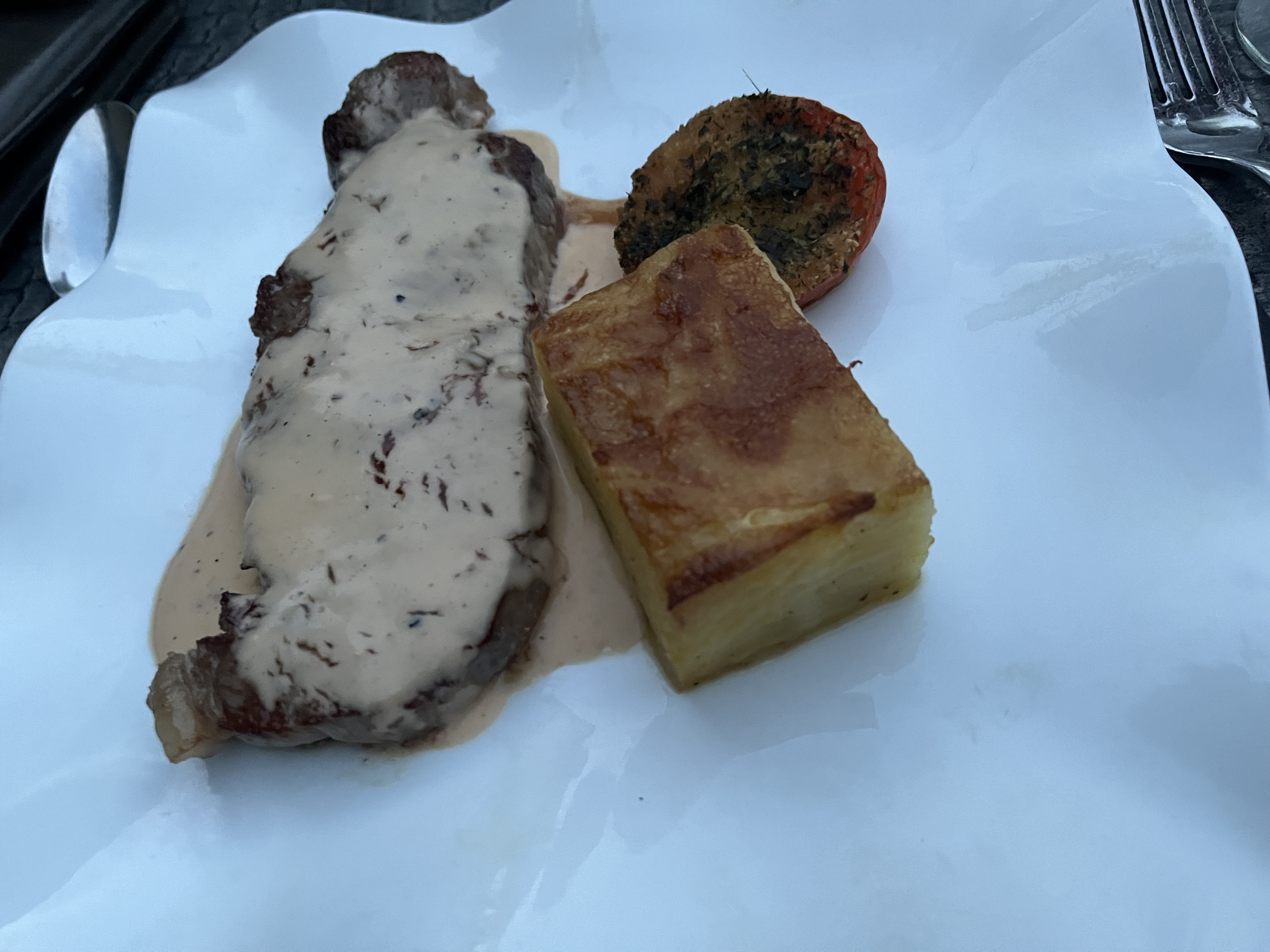 Un agréable moment en terrasse personnel au top le faux filet un delice je recommande fortement