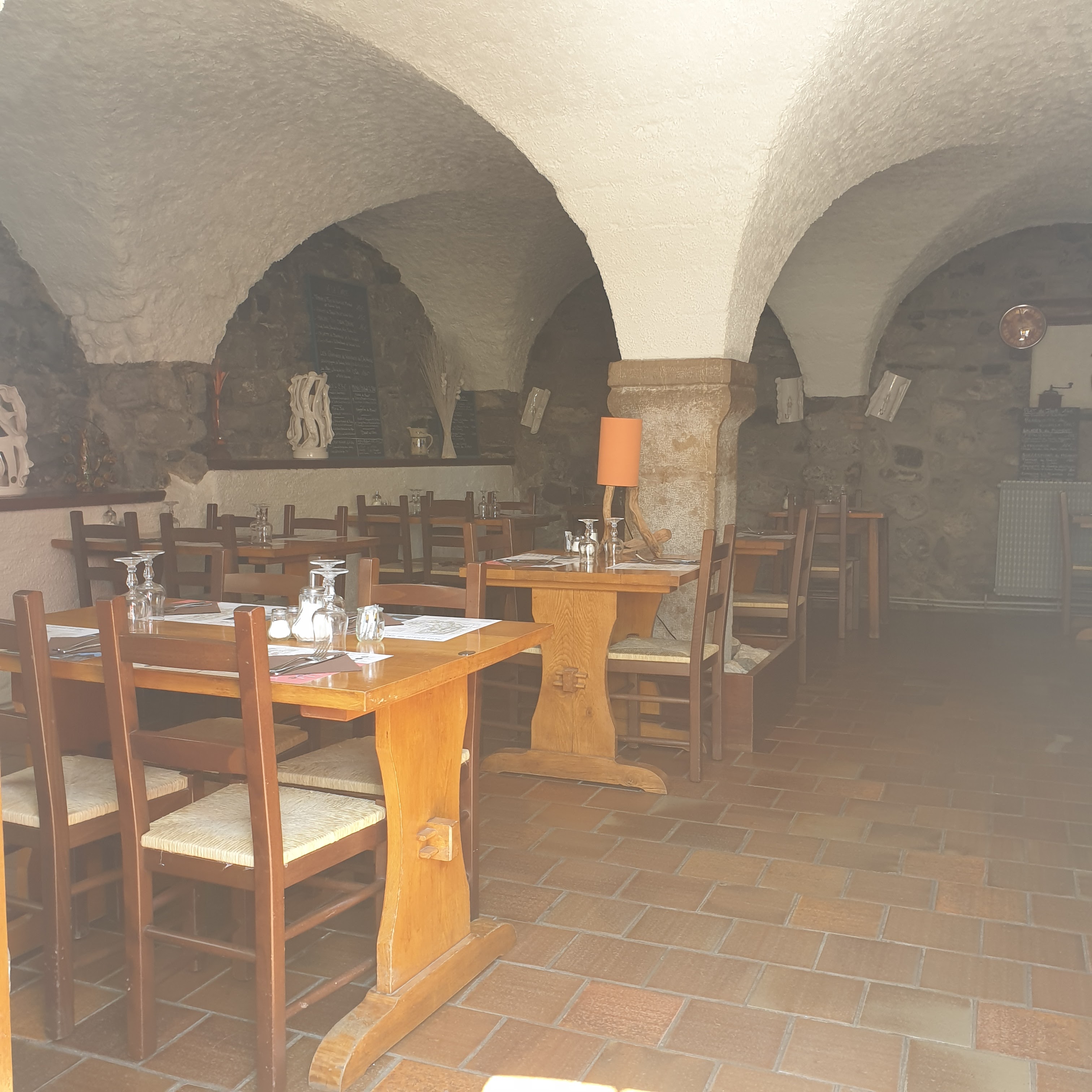 Très bonne cuisine. Nous avons pris les filets de truite saumonée. Le décor est intérieur est magnifique style caveau en vieilles pierres. L'accueil et le sourire étaient au rendez-vous,et ça devient rare de nosjours. ...Il faisait frais et nous n'avons pas pu profiter de la belle terrasse légèrement en contrebas de la route!