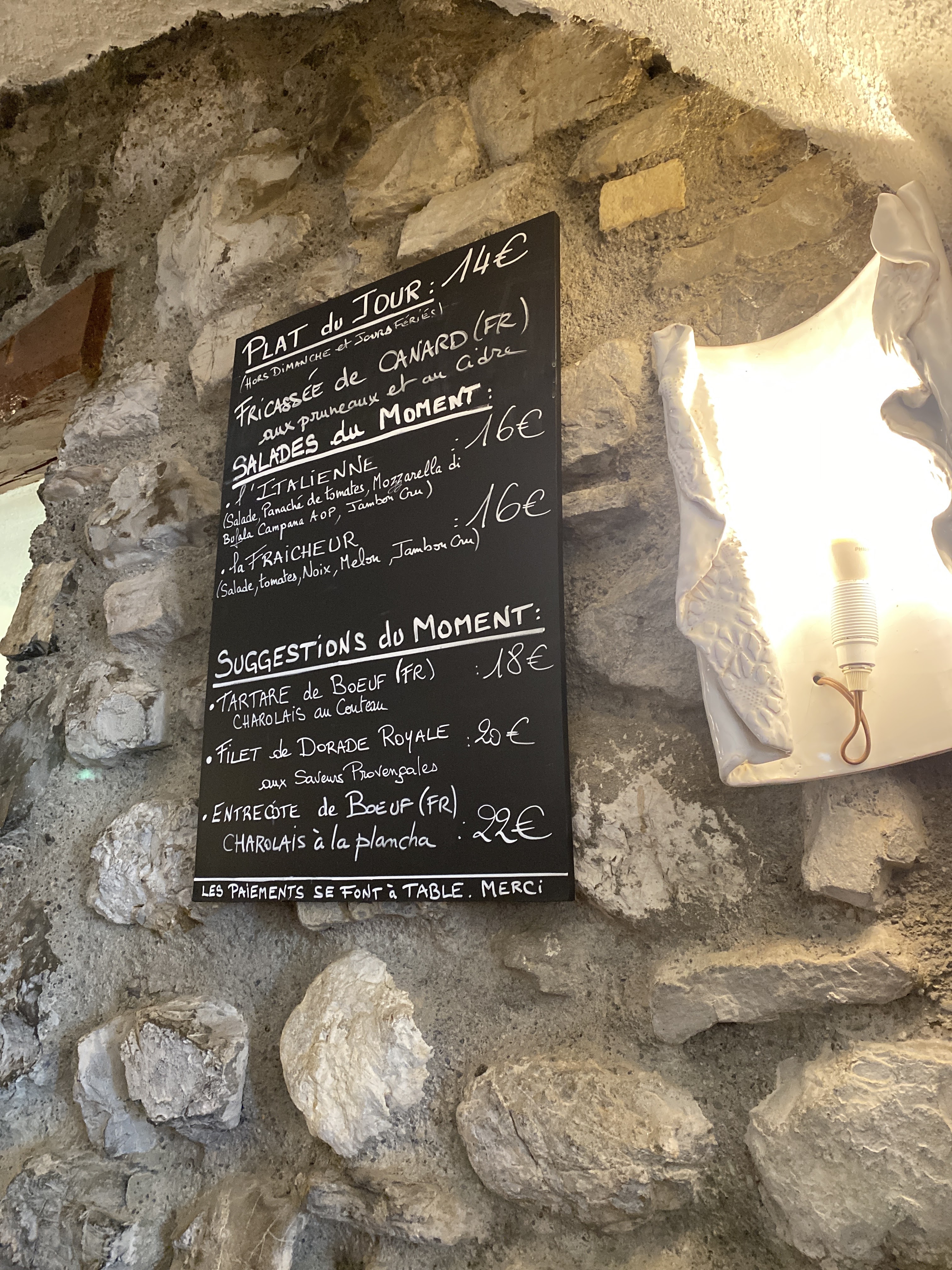 Cadre très agréable et bon acceuil. Menu travailleur de bonne qualité. Vue en terrasse et intérieur en pierre . sympa....nostalgie de l ancienne propriétaire ou on vous servait le fromage sur un plateau et le pichet de vin était au menu ouvrier et les plats servis dans des plateaux avec des portions copieuses et pour la tablée ..je pense que c est un bon resto pour les touristes , bonne nourriture , cadre exceptionnel et propre, pour les travailleurs un petit peu plus serait bien....