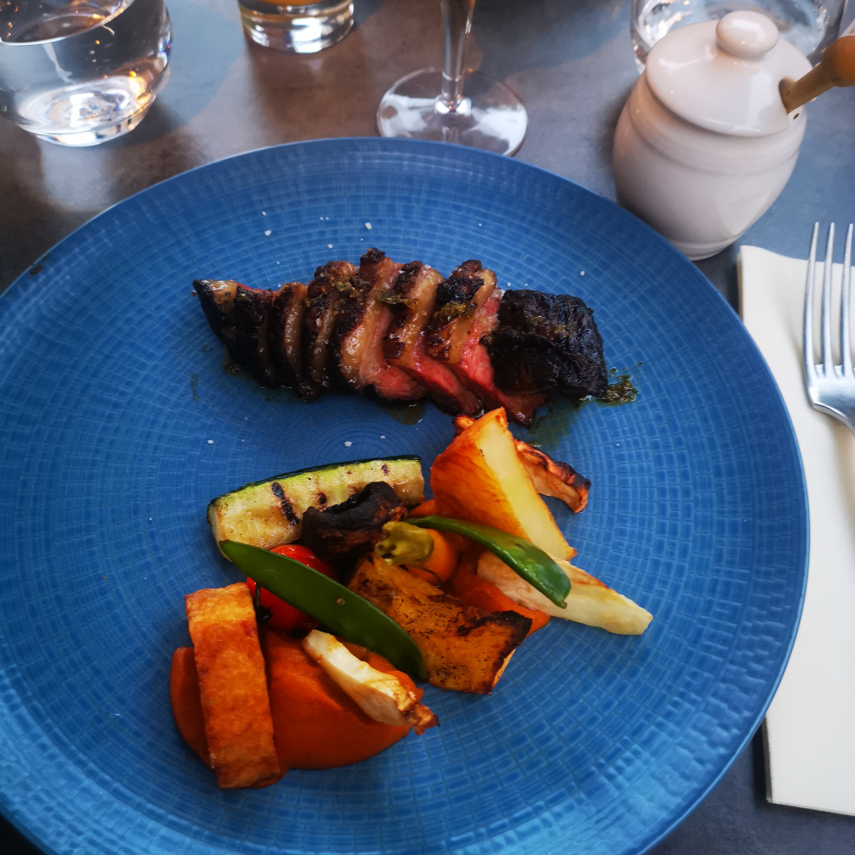 Le service pro, prevenant mais sans affectation, environnement très agreable (salle, table, vaisselle...), une cuisine légèrement mais délicieusement différente et la découverte d'un vin unique...une belle soirée...