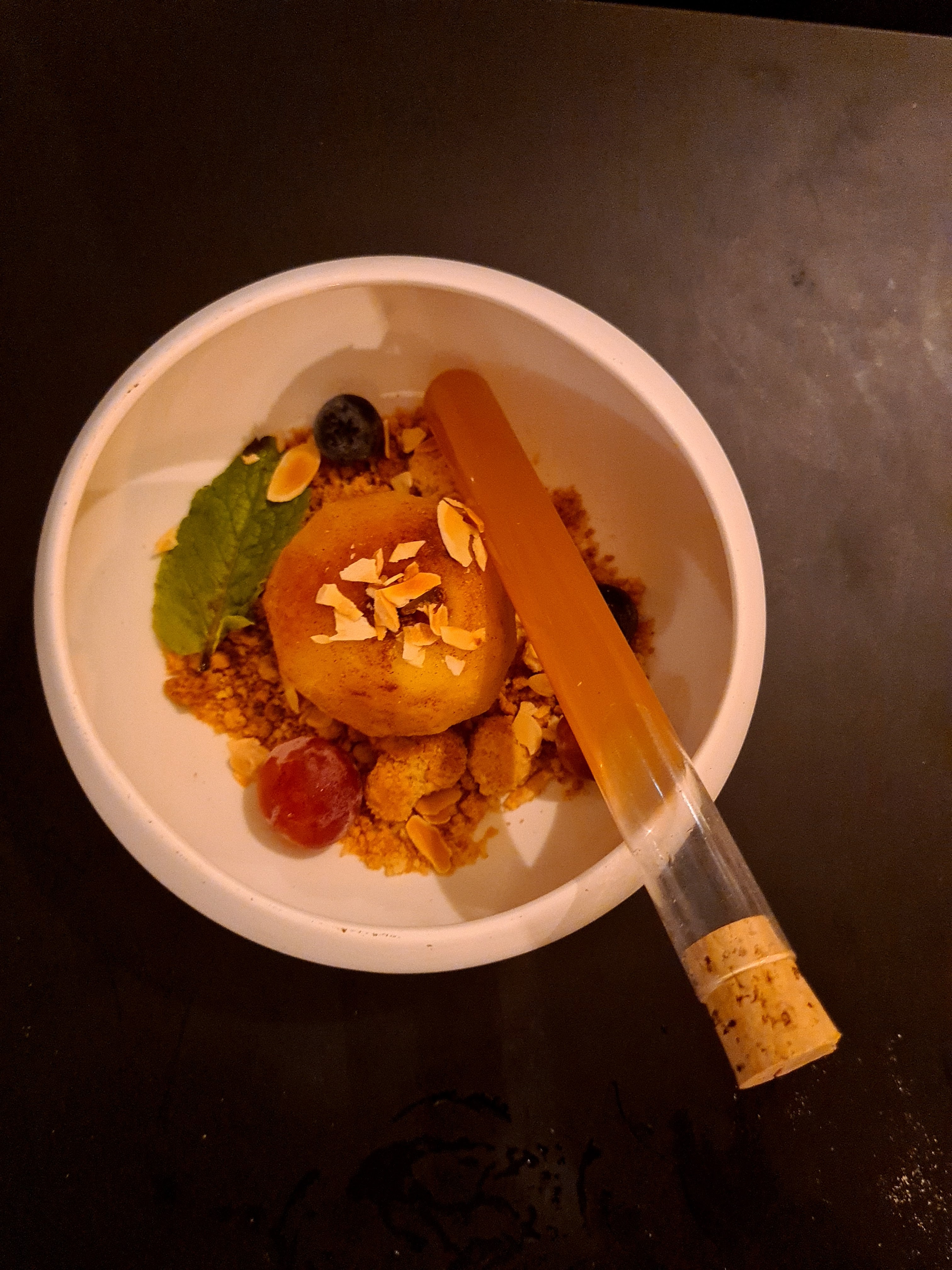 Cuisine raffinée de qualité Mention spéciale au dessert panais poire et glace au sésame noir : une pure merveille