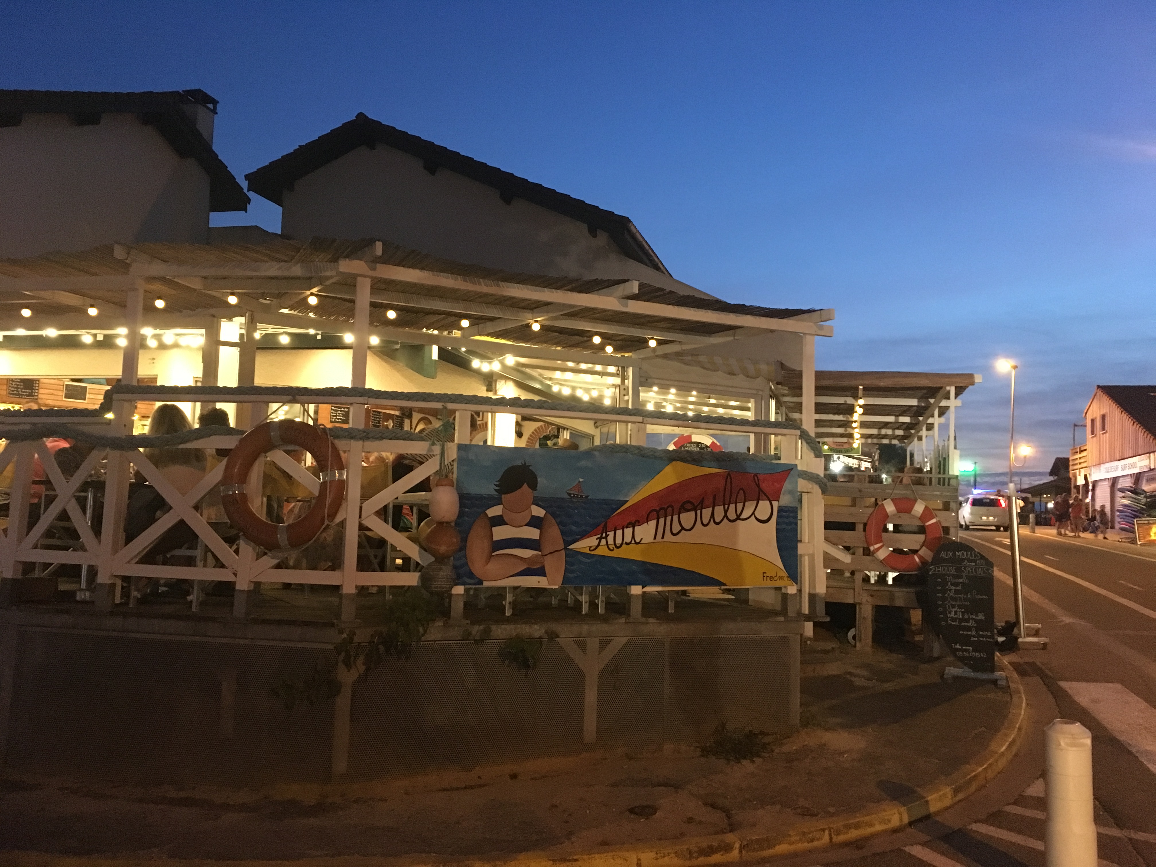 Dans ce restaurant, il n'y pas de belle nappe, de belle vaisselle, c'est bruyant, c'est populaire et c'est tout ce que j'aime, pas de chichi, simplicité et bonne humeur c'est le maître mots pour ce restaurant. Attention même si vous réservez il est possible d'avoir de l'attente, mais c'est dit avec le sourire, dans le fond, ce n'est pas bien grave.. c'est les vacances, on le temps. Assez parlé de l'ambiance .... le plats est fabuleux, les moules sont excellente, j'ai pris moules Roquefort .... bon faut aimer le fromages, perso j'ai adoré. Les classiques comme les moules marinières sont excellentes. Le prix, super correcte apéros plus plats desserts 19€ par personnes.