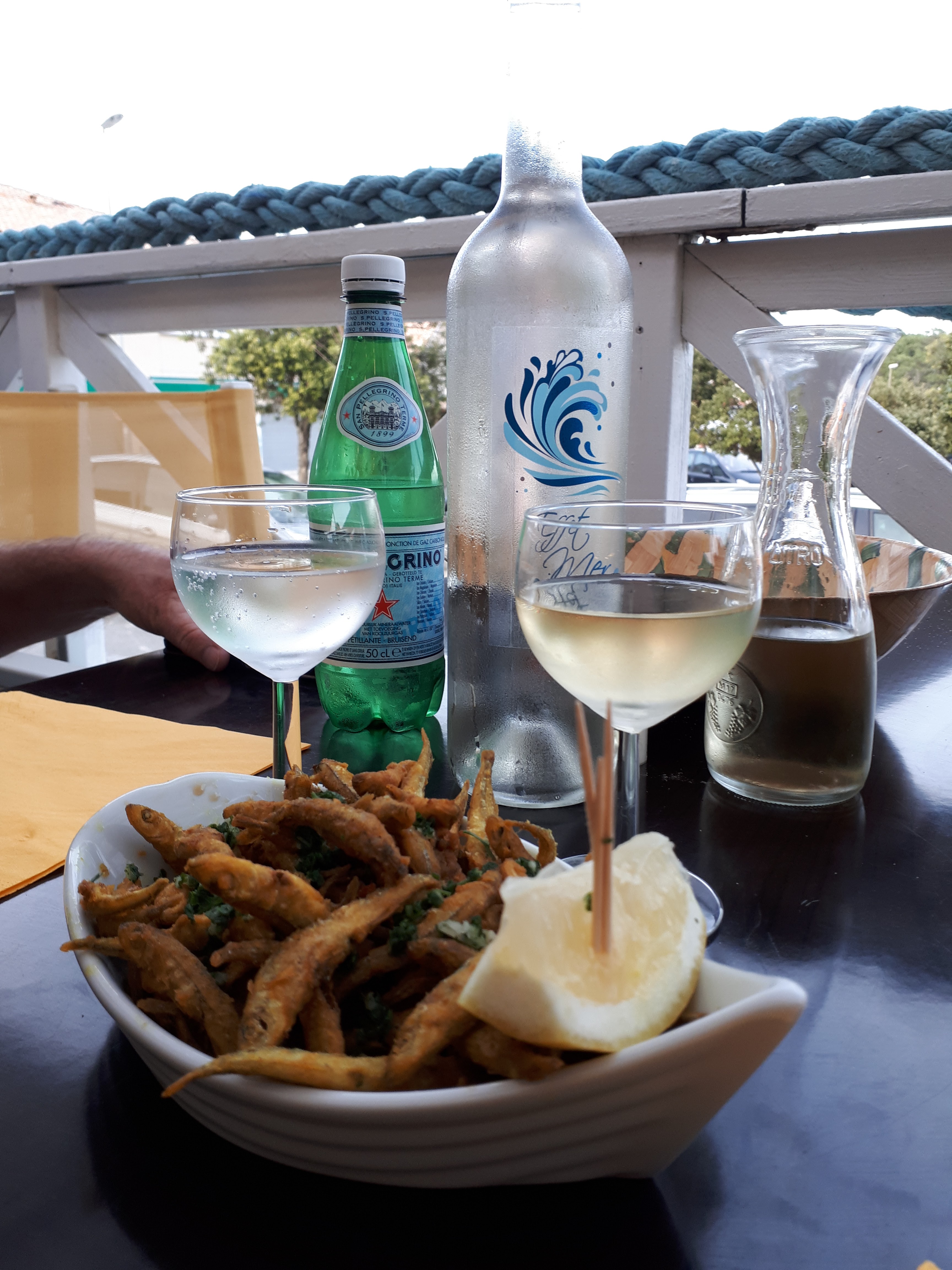 Ce jour 16 août 2023, après une bonne randonnée, nous avons fort apprécié la sangria, la copieuse portion de friture d'éperlans, les chipirons ....servis avec le sourire. Je recommande, l'équipe est parfaite !