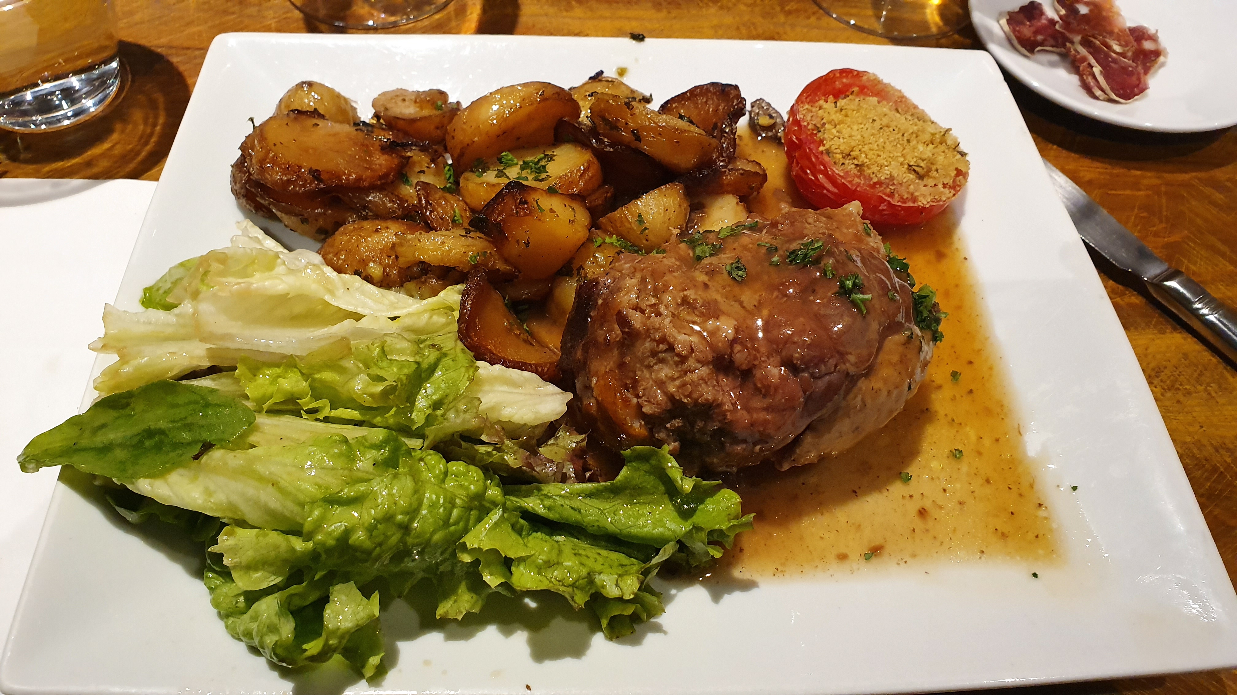 Bof ! Voici mon impression générale sur le dîner. Un vin au verre en début de madérisation, un cuisine pas du tout faite maison et la croustade aux pommes n'en a que le nom car rien qui croustille en bouche. Vraiment déçu.