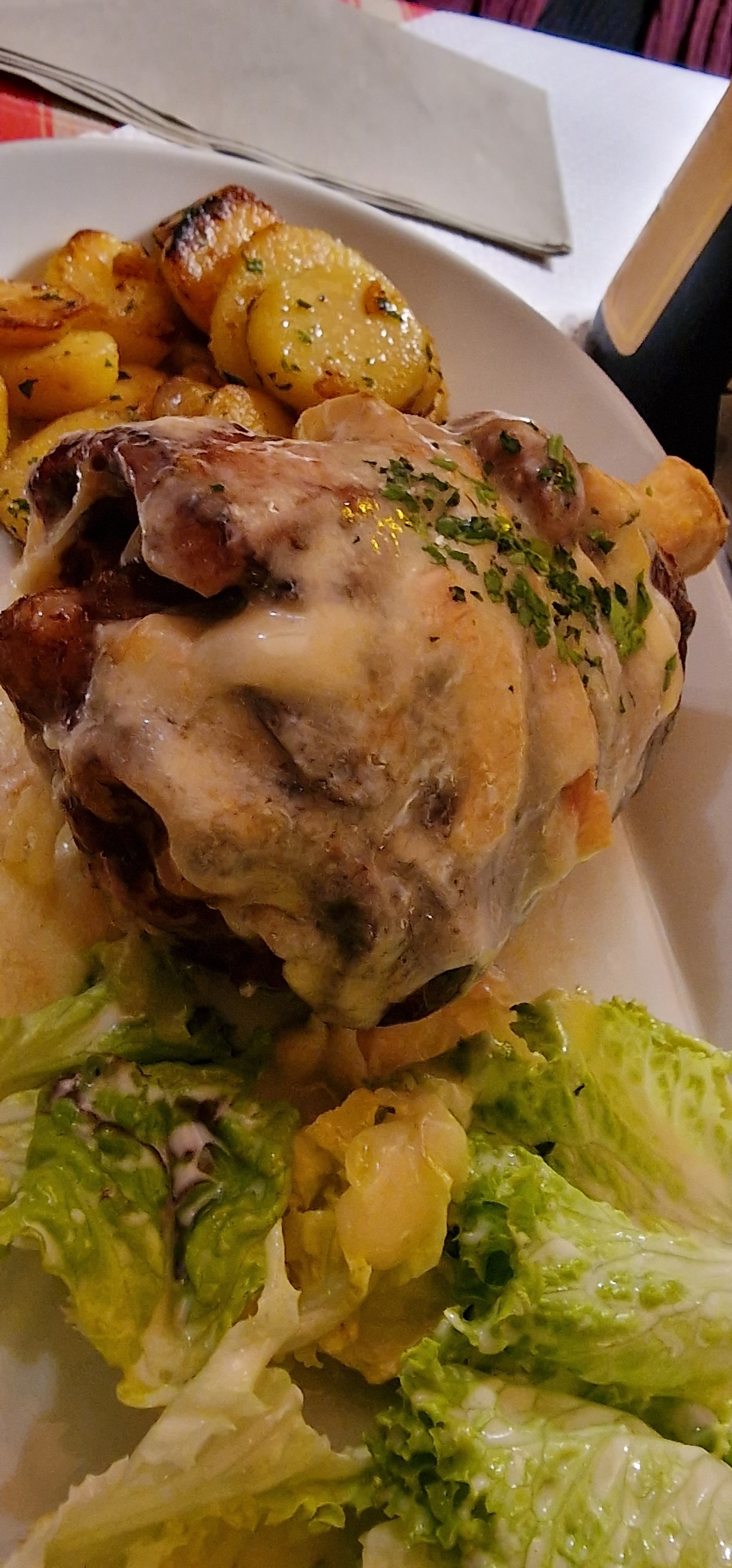 Jarret'ment vôtre ! Pour les vrais amateurs du jarret alsacien c'est là que cela se passe. Le fameux gras du jarret confit fond en bouche, comparez ça a un chamallow c'est pareil, la viande se coupe à la cuillère, à ça, vous laisser monter le tout avec une petite sauce au munster qui aura eu le temps de gratinée sur le dessus (on en redemanderai presque),.une vraie dinguerie culinaire ! La même version existe bien entendu sans le munster. Si vous avez finis vos pommes de terre sautées comme on dit chez nous, ils ne font pas la fine bouche et vous remettent une portion de quoi finir votre assiette...et là vous dormez déjà plus sur le ventre. La tarte flambée, onctueuse et crémeuse...les galettes de pommes de terre et saumon...bref ! Recommandation spéciale pour la carte des vins qui ne vous assassine pas avec les prix....bref, vous l'aurez compris, du bonheur pour votre palais à déguster sans modération, service sympathique et souriant. Le chef Cédric qui dirigeait avant une vingtaine de restaurants à Strasbourg à peut-être trouvé son home sweet home à Valff et surtout mention spéciale, si vous avez faim, même à 22h, la porte est toujours grande ouverte...chose plutôt rare dans un village en Alsace. La gastronomie à une fois de plus trouvé un chef d'orchestre sans oublier de vois remercier pour votre eau de source, symbole de vie façon framboise...un délice ! Hâte d'y revenir. On s'est vraiment fait plaisir avec plusieurs apéros, entré - plat - dessert - bouteille de vin, 45€ par personne, j'ai pas de soucis avec l'addition quand elle les vaut, dans une pub on vous aurait dit, vous le valez bien! Mention spéciale également pour ce très bel arbre de Pâques, c'est le plus beau qu'il m'est été donné d'admirer dans un restaurant ! Classe.. Quand je lis plus bas que le restaurant est dans les montagnes et de surcroît près des champs, je pense qu'il s'est trompé de restaurant, car on n'est pas dans les montagnes mais dans le centre d'un village, honteux d'écrire un pareil avis absolument pas objectif.