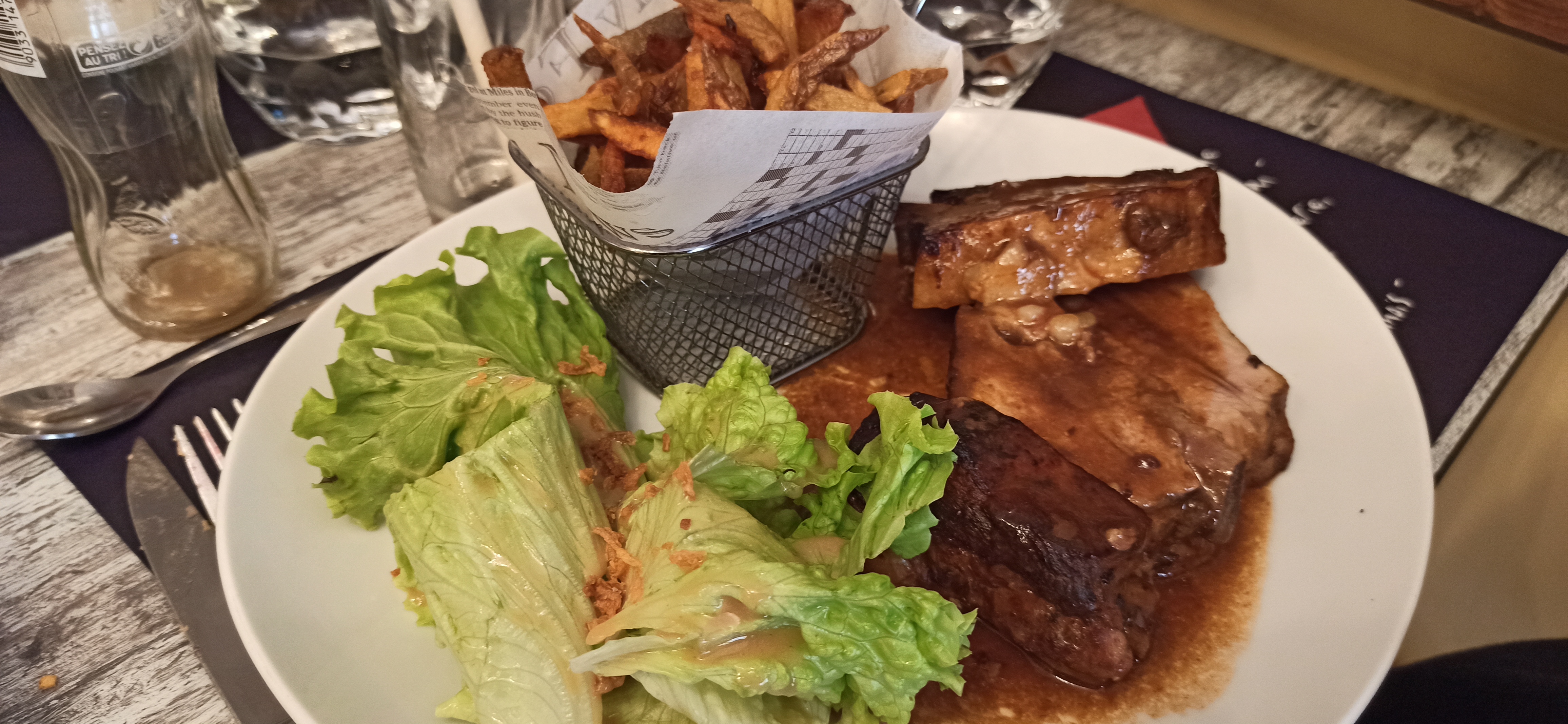 Excellente adresse, la viande est tendre et goûteuse, les frites maison... TUERIE Bref on reviendra. C'est local, maison....