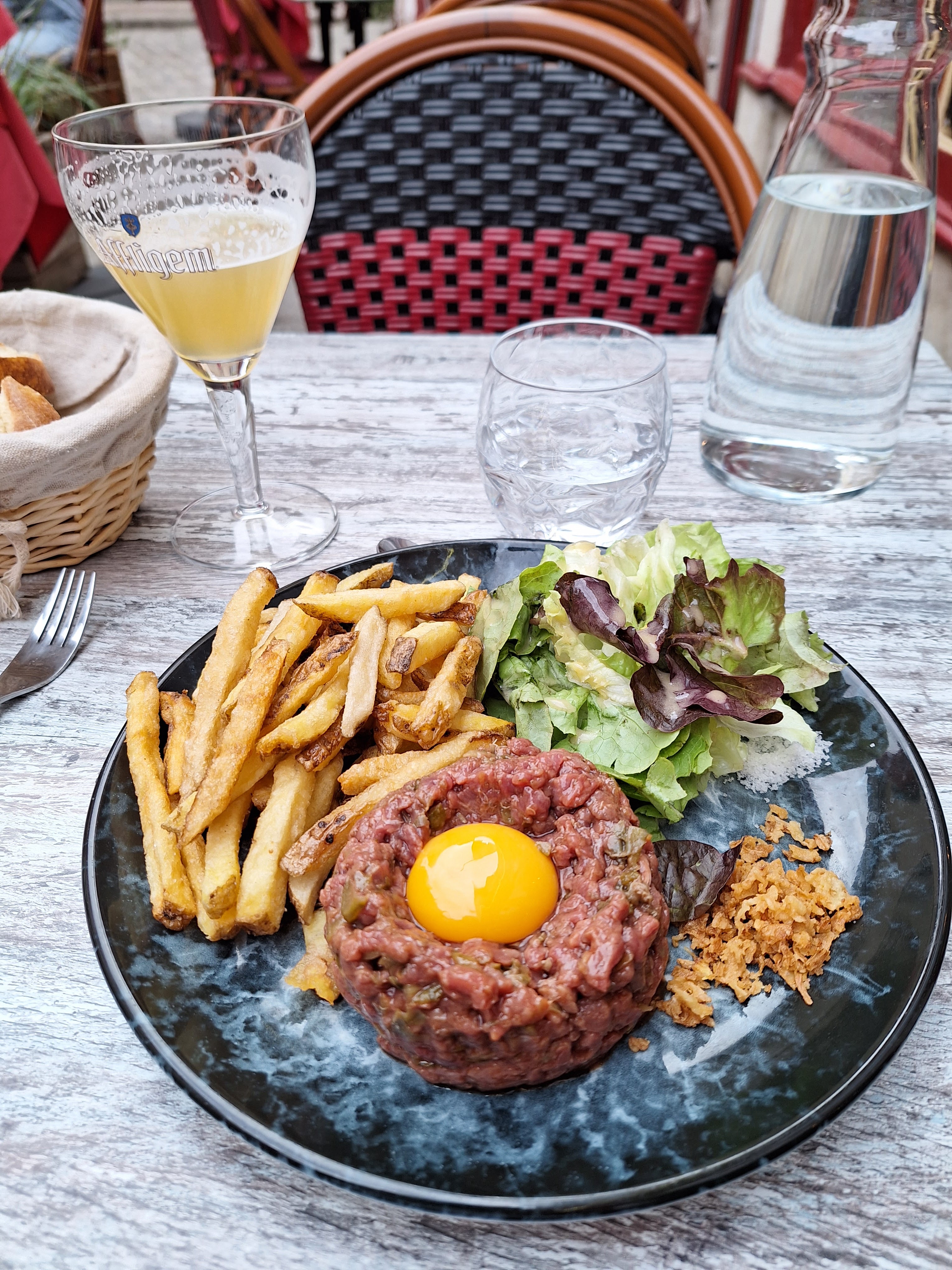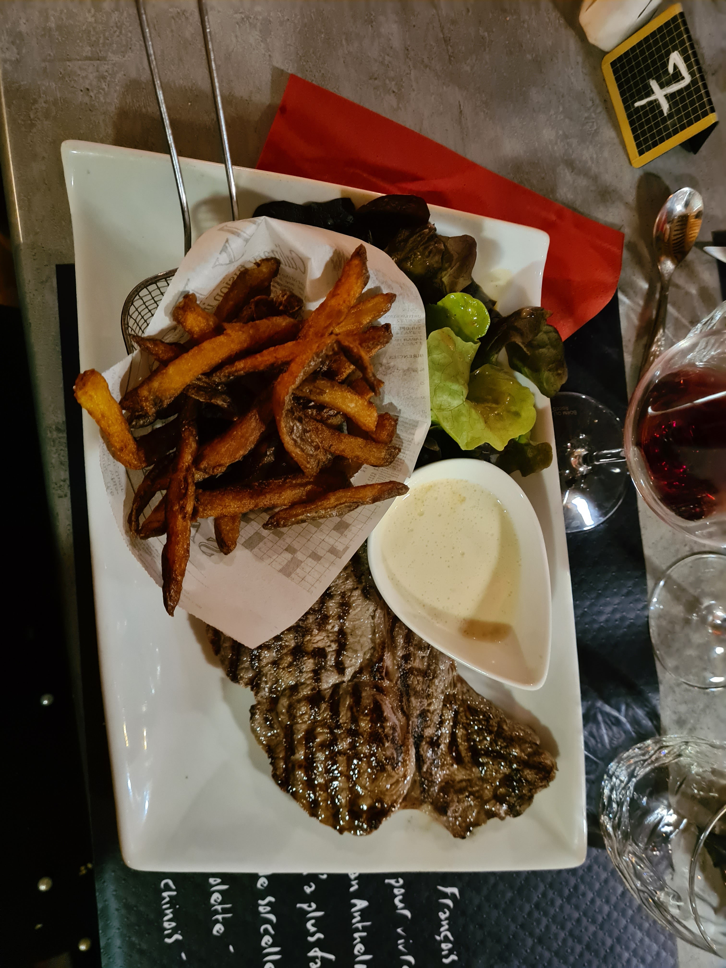 Un moment sympathique sur une petite terrasse agréable. La viande était bonne et bien cuite, les frites étaient également bonnes quoi qu'un peu trop salées. Le fondant/moelleux au chocolat était absolument excellent.