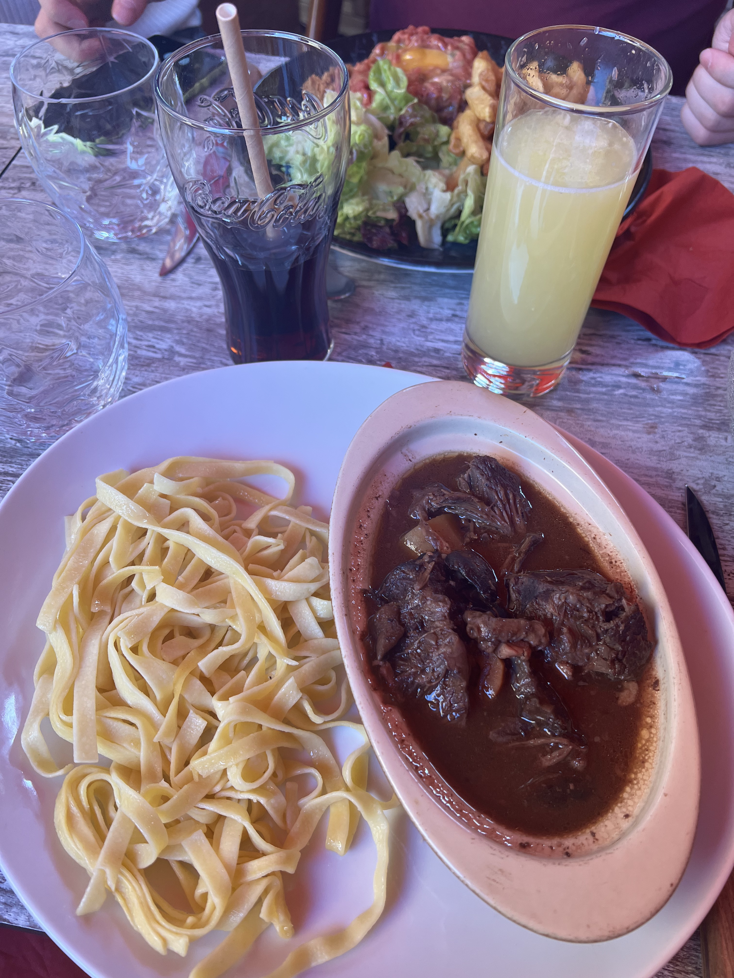Arrivé samedi soir, faut pas dépasser 21 heures. Mais du coup on a reporté la visite au dimanche midi. Et là quel régal ! Des œufs meurette à mourir , des escargots à l’époisse de dingos et puis un bourguignon à couper avec le doigt tellement il était tendre et dont le seul défaut était d’être servi avec des tagliatelles, une purée maison serait de meilleur aloi. C’est un resto incontournable