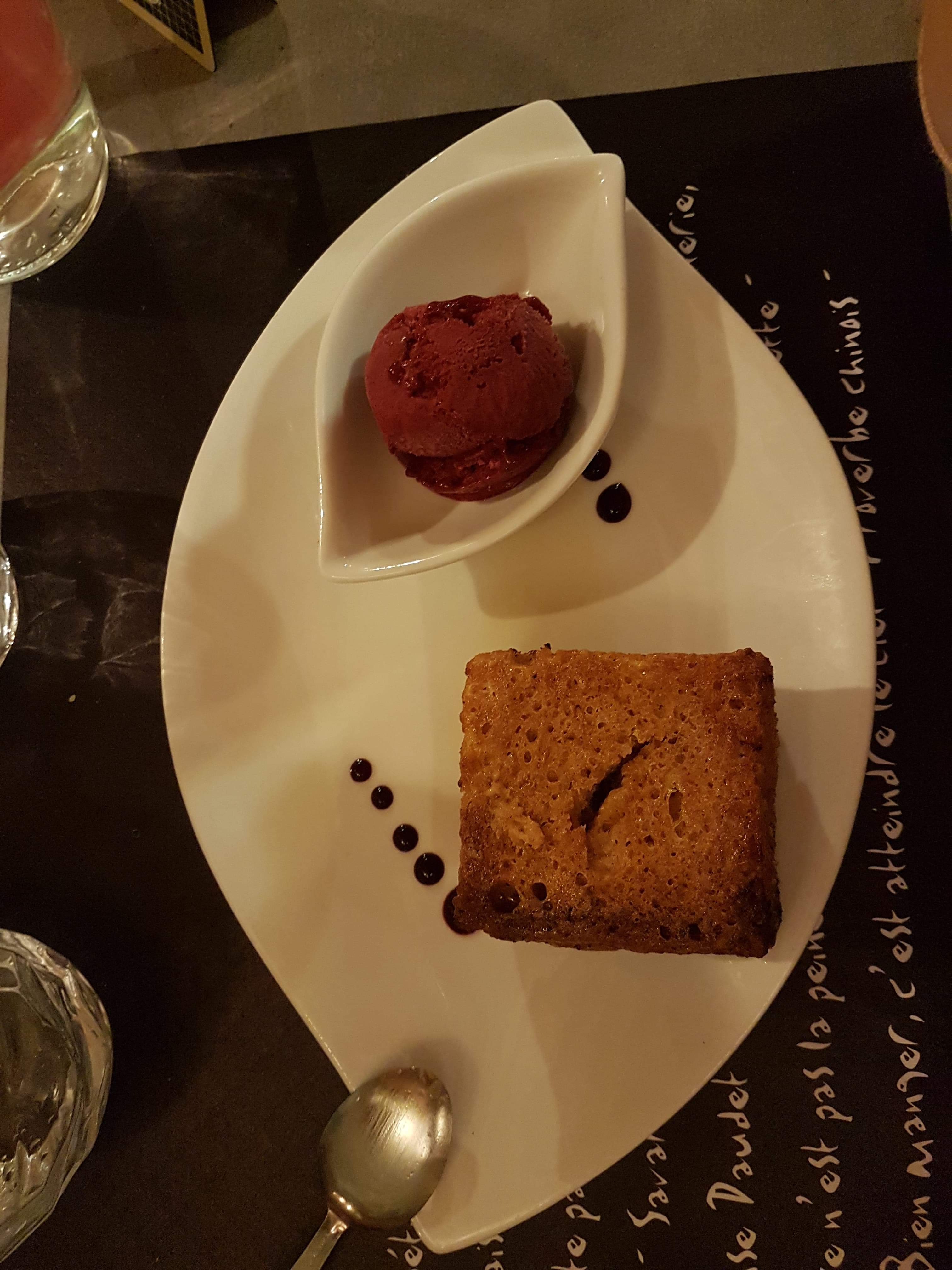 Excellent dessert, un mi-cuit a tomber a la renverse fait maison absolument De...li...cieux, a c'est sur que c'est pas du congelé avec un goût et texture pareille. De plus la texture, bien fondant a l'intérieur. Personnels très sympa, une bonne ambiance et des prix corrects.