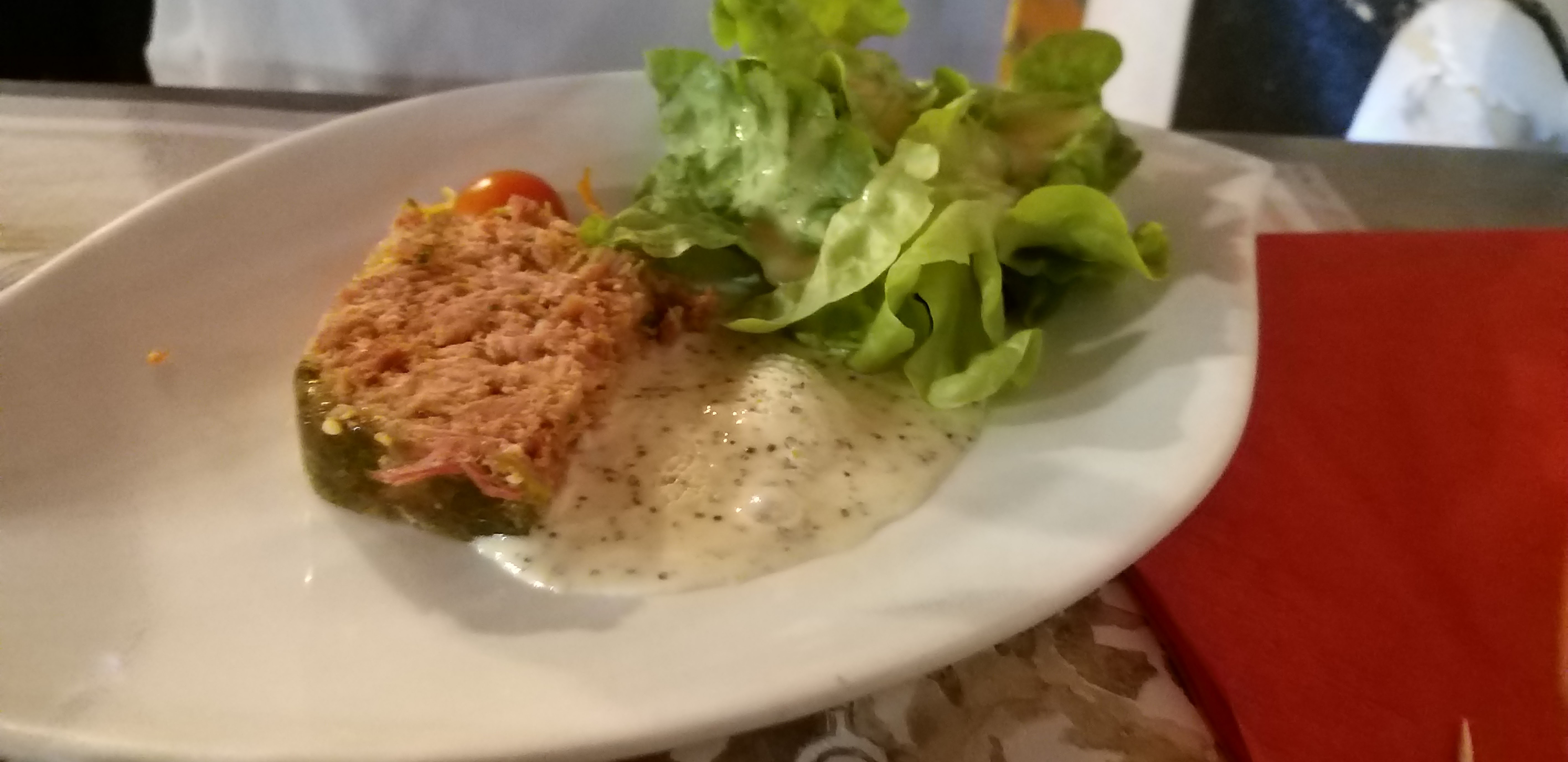 Très très bon. Andouiette à la sauce moutarde magnifique. Salade au saumon aussi délicieuse. Accueil très sympa restaurant au cœur de la ville. J'y retournerai. Je recommande vivement.