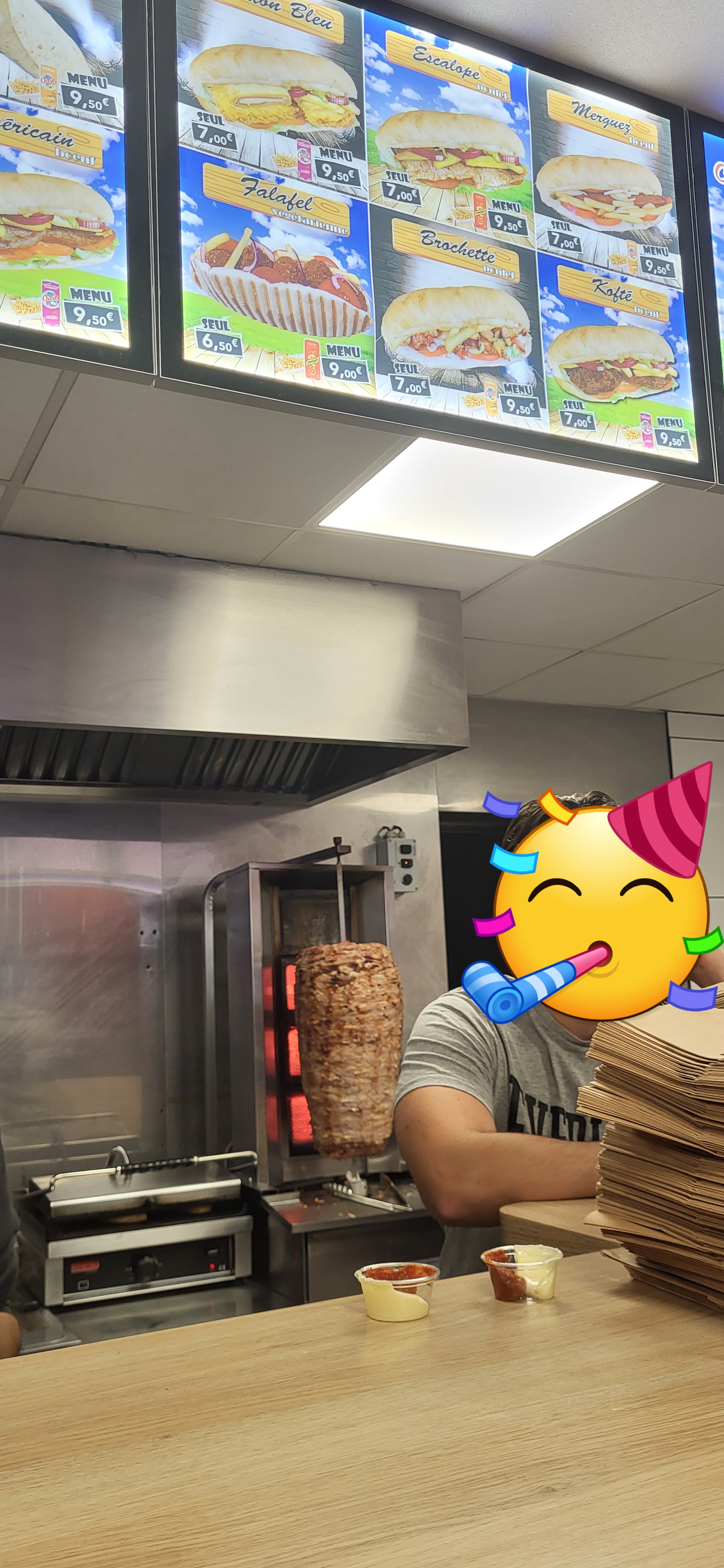 Franchement agréablement surpris . Toutes est frai et fait maison La viande il prépare lui même les broches en direct ! Les prix sont identiques voir inférieur a la concurrence . Personnel sympa qui a envie de bosser ( certain devrai prendre exemple a bonne entendeur hein ... ) bref aller voir par vous même vous serez pas déçu.