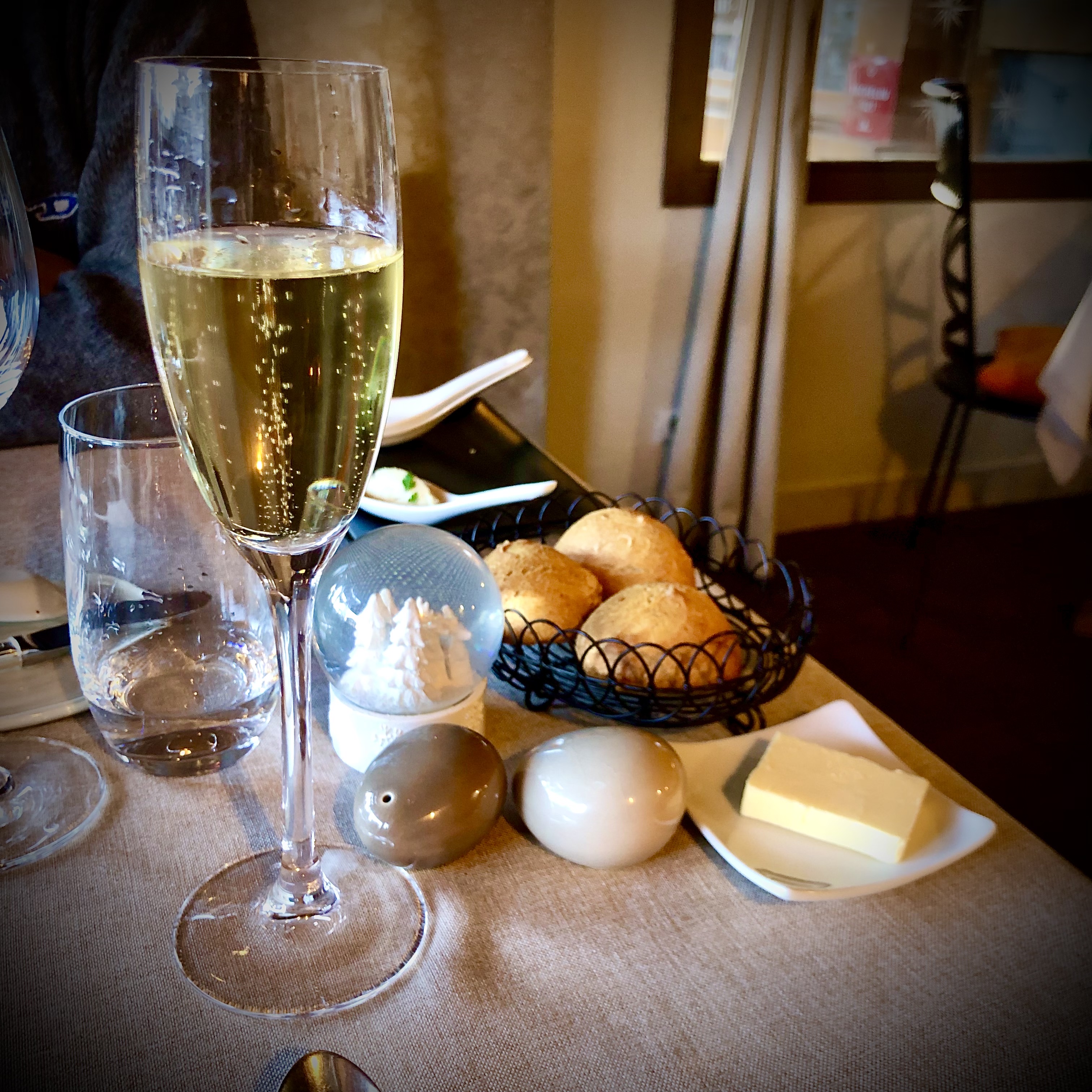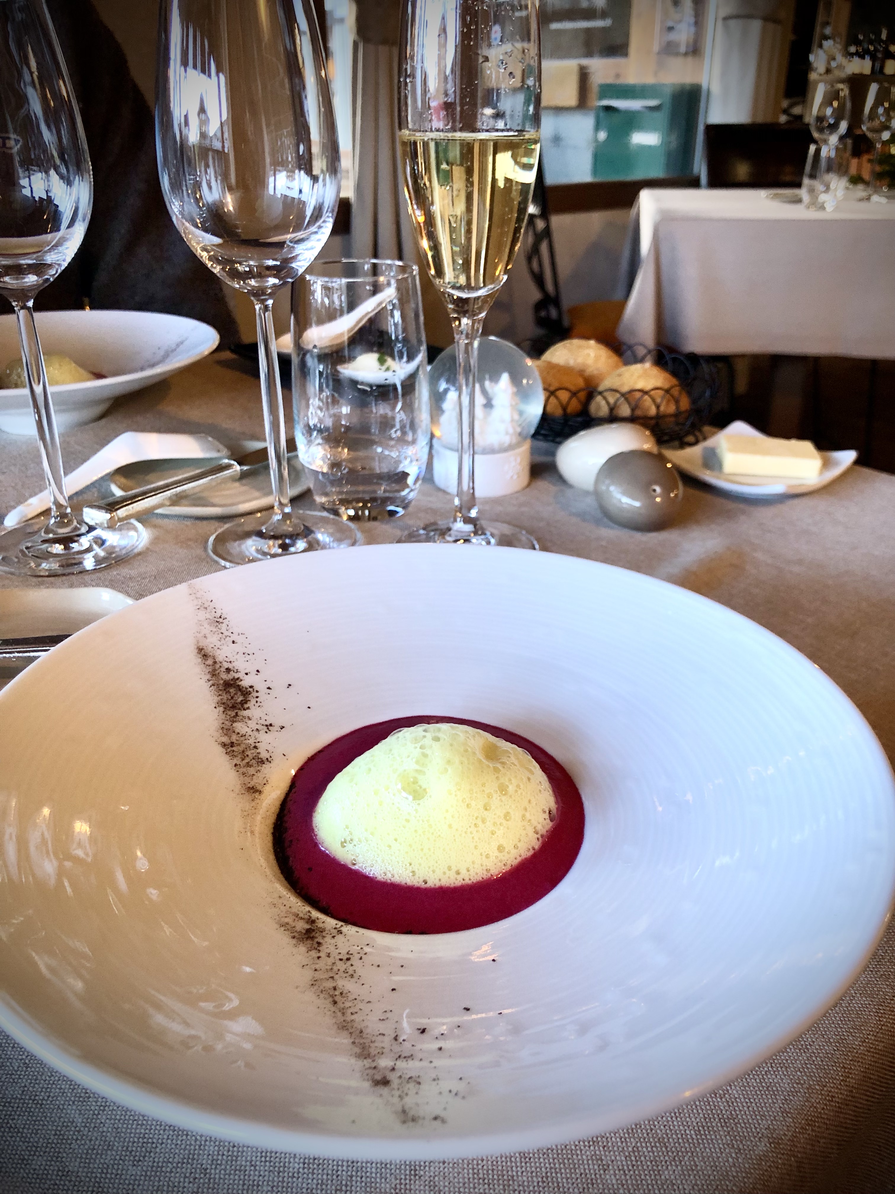 J'ai mangé ici avec Elena et son amie lors de notre visite à Courchevel et avons eu un dîner incroyable. Un restaurant si pittoresque et bien géré avec une excellente cuisine et un personnel agréable et attentionné. Nous avons commandé leur menu dégustation le plus basique pour 115 € (je pense) plus une bouteille exceptionnelle de Chablis Grand Cru recommandée par le sommelier. Je suis d'accord avec le Guide Michelin pour dire que la carte des vins est bien préparée, pas trop grande mais suffisamment grande avec des sélections perspicaces. Le repas était extraordinaire avec chaque plat plus mémorable que le précédent. Un élément qui s'est particulièrement démarqué était l'omble chevalier, qui était probablement le meilleur que j'ai jamais mangé. Franchement, ça vaut le coup de venir à Azimut rien que pour essayer ça. Il y a une raison pour laquelle Azimut est recommandé dans le Guide Michelin et nous planifierons certainement une visite de retour lors de notre prochain voyage à Courchevel. 5 étoiles - Fortement recommandé.