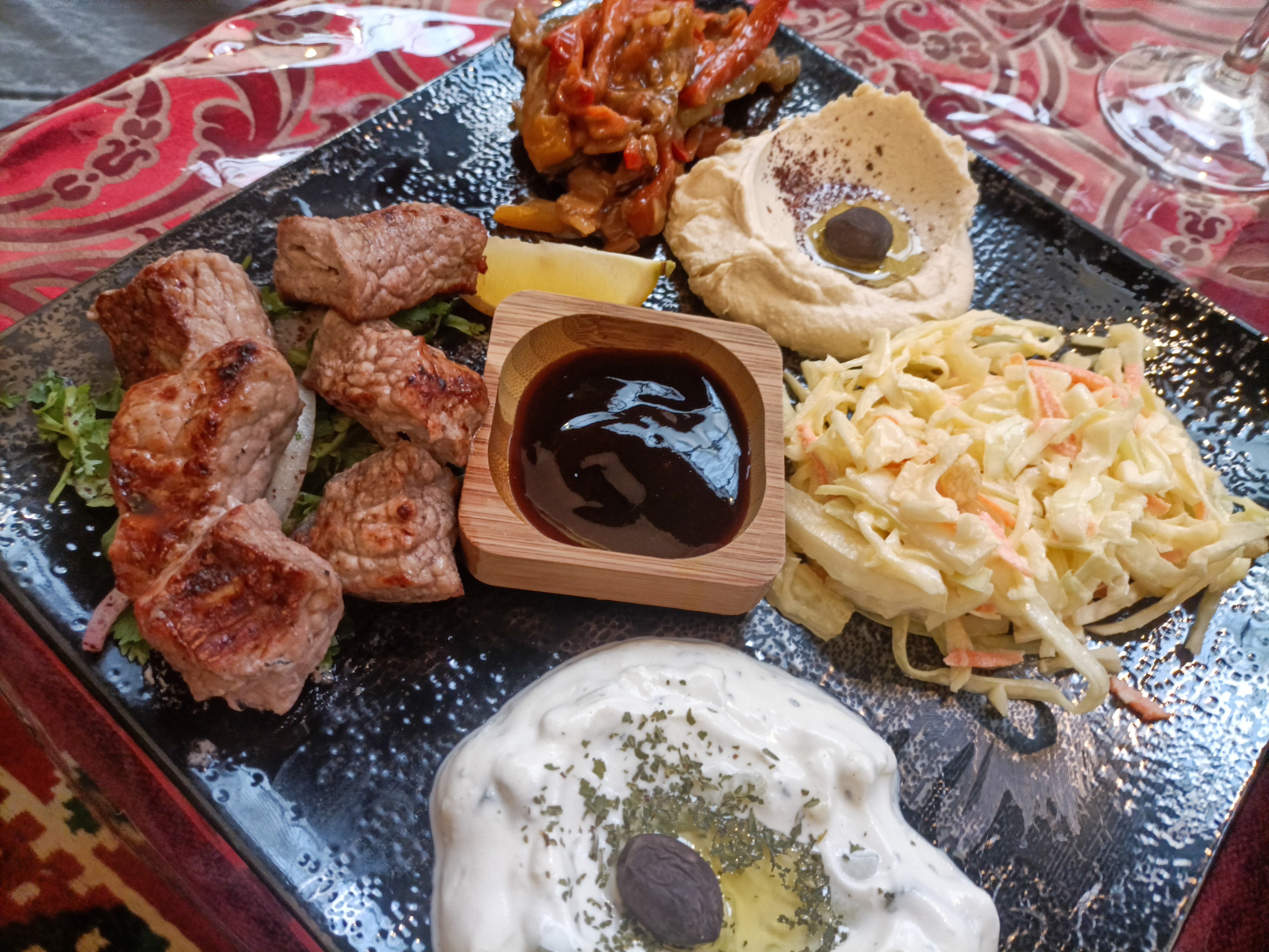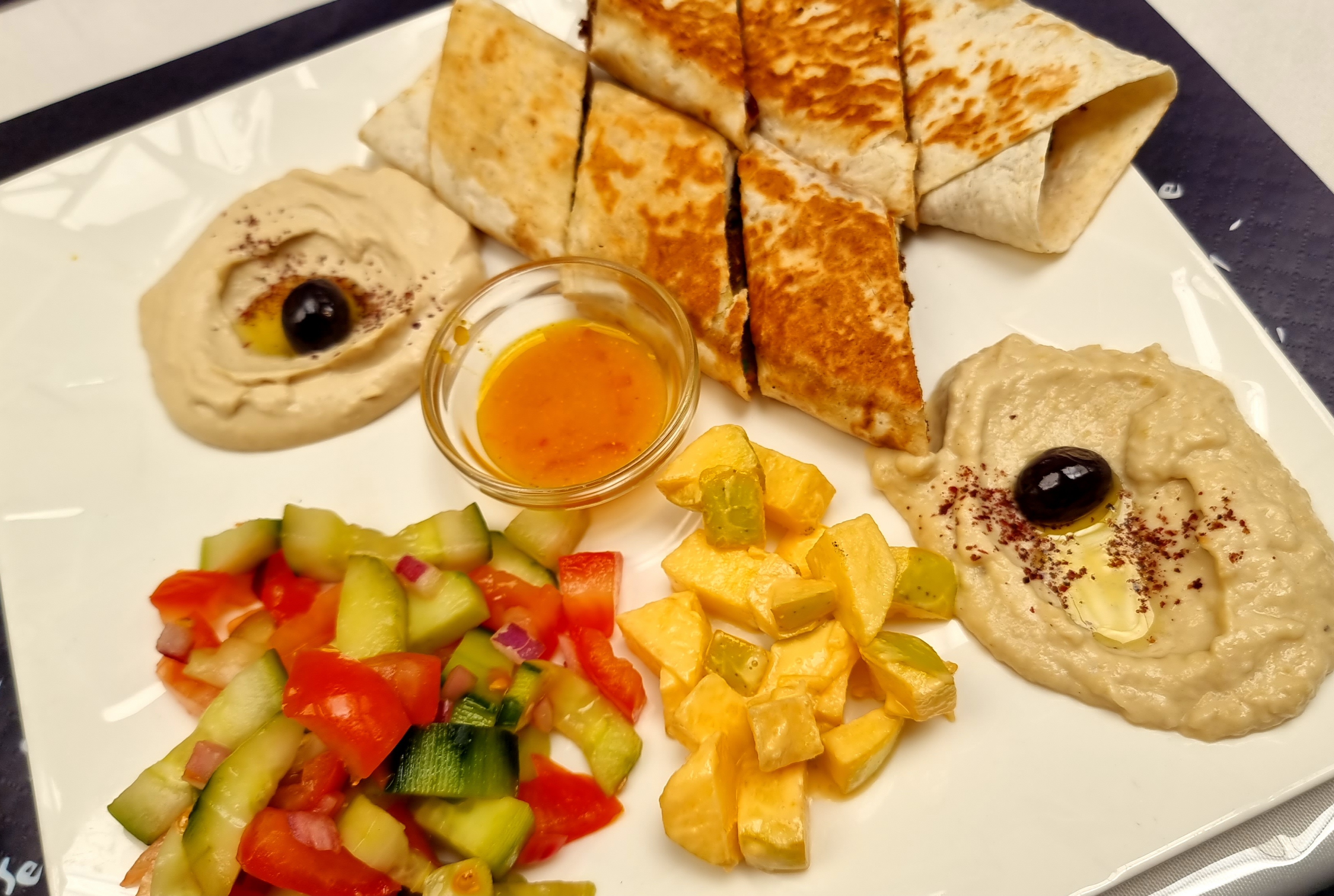 Cuisine délicieuse avec beaucoup de saveurs !! Pour une première expérience de la cuisine Irakiennne la barre a été placée très haute ! Service souriant et agréable, plats végétariens/vegans. J'y retournerai avec plaisir !