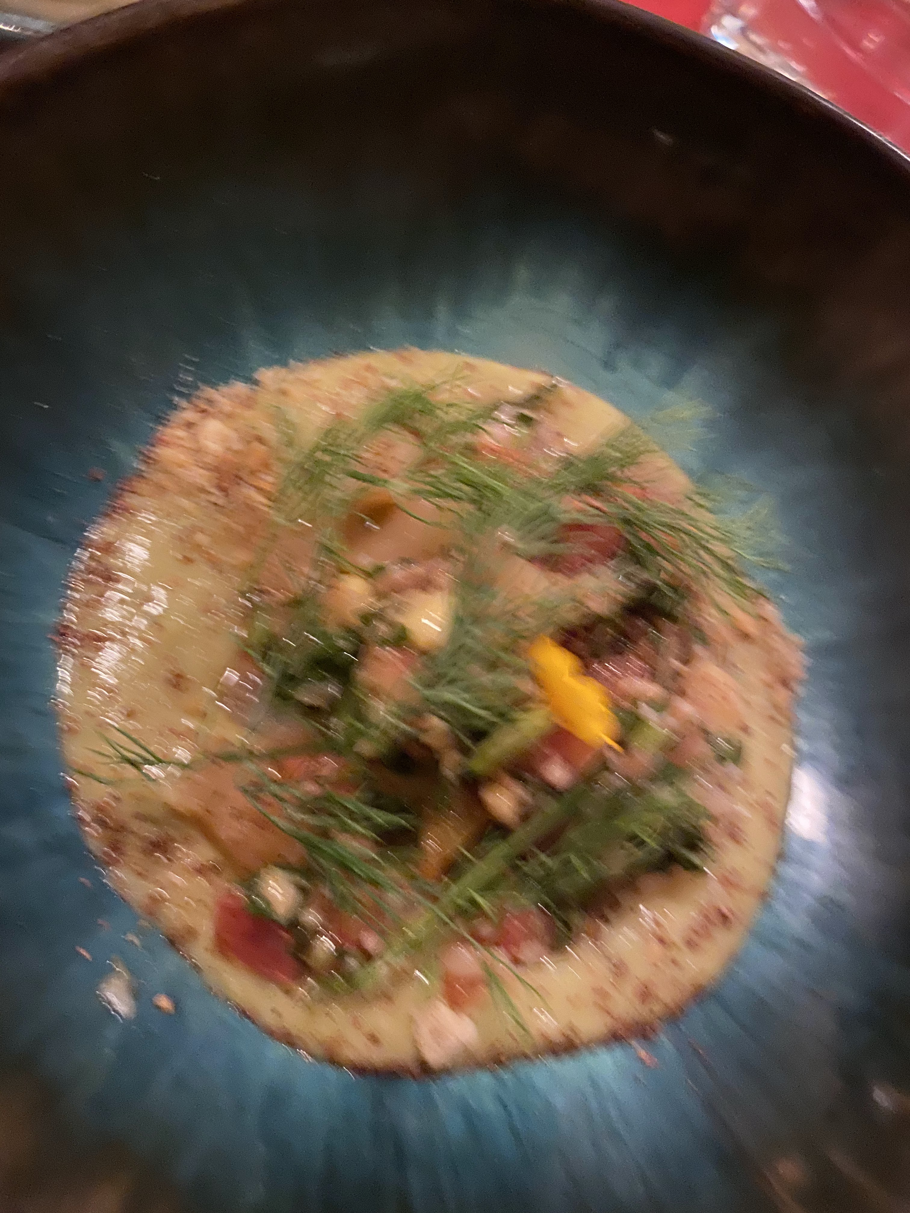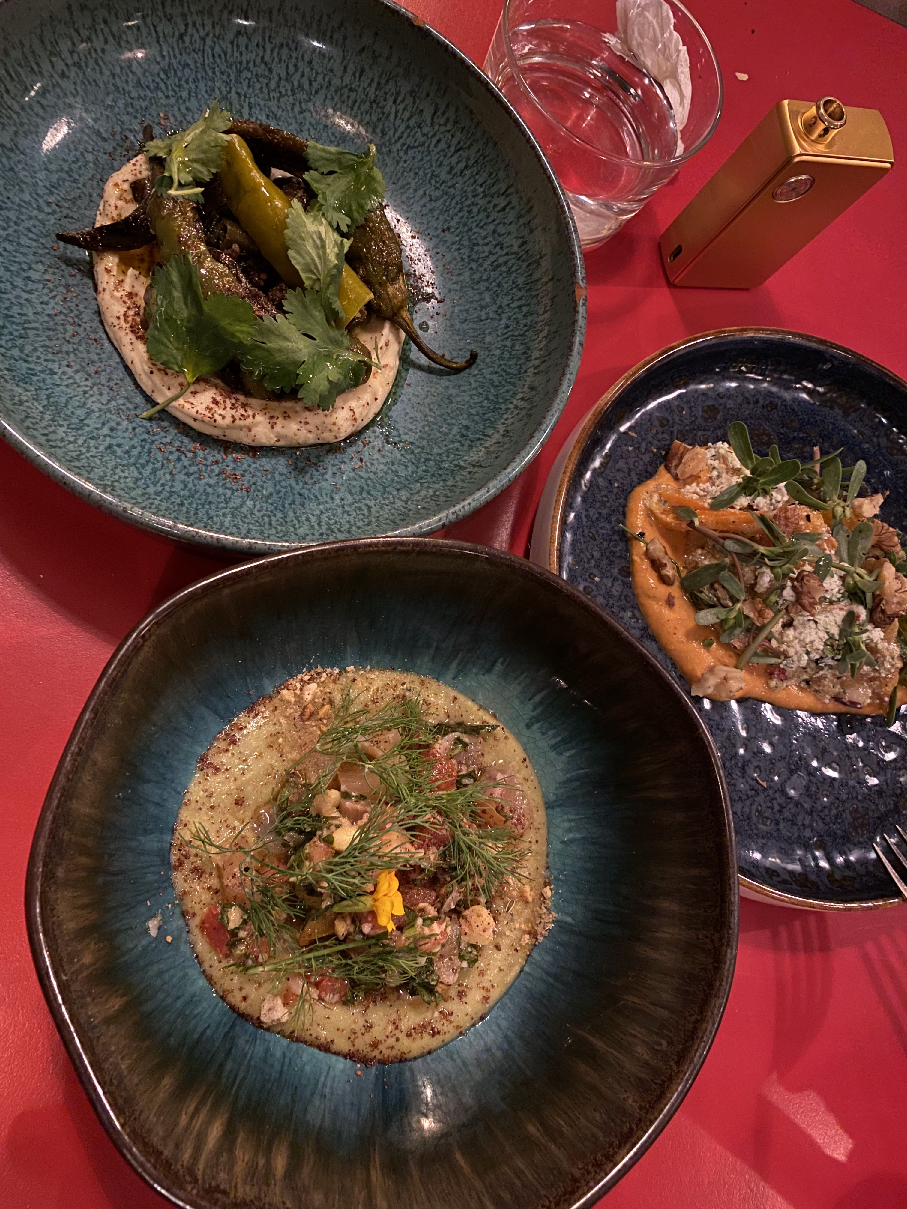 Chaleureuse et joyeuse ambiance pour ce restaurant hors normes puisque le chef prépare absolument tout ce qui est dans vos assiettes. Les plats associent légumes, herbes, sauces et condiments aux allures méditerranéennes. Belle découverte grâce à nos amis.