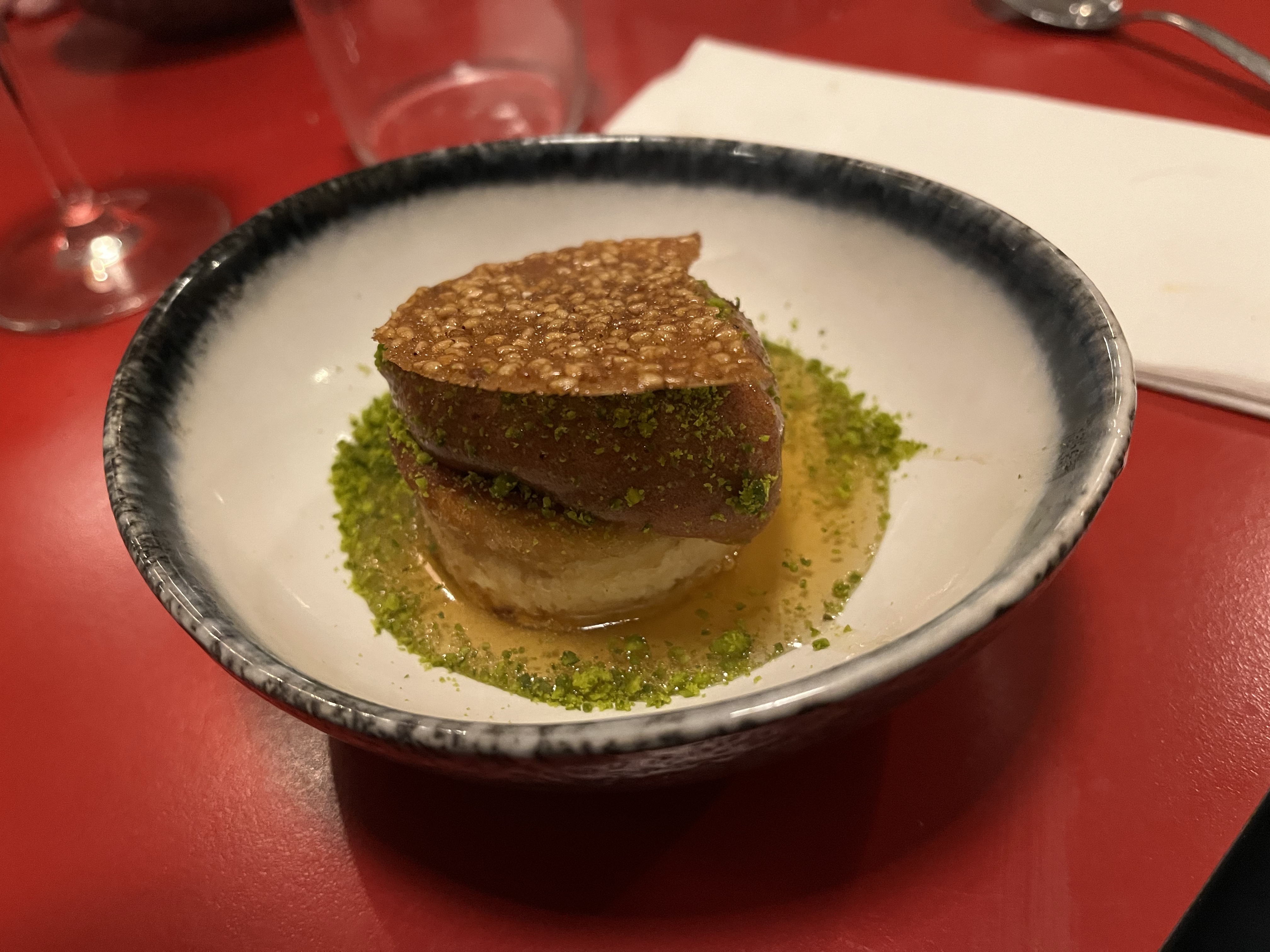 Une belle affaire moderne de cuisine française associée à une atmosphère détendue à ne pas manquer à Toulouse. Nous avons essayé toutes les entrées et plats de saison à l'exception du tataki. Des saveurs bien équilibrées avec une superbe assiette, leur salade d’oreille de porc noir est absolument spectaculaire. Plat était tout aussi exceptionnel avec des portions parfaites. La carte des vins était principalement composée de vins naturels, pas particulièrement appréciés, mais suggérant très bien ce qui conviendrait à nos palettes. La star brillante de la soirée était absolument la tarte poire !
