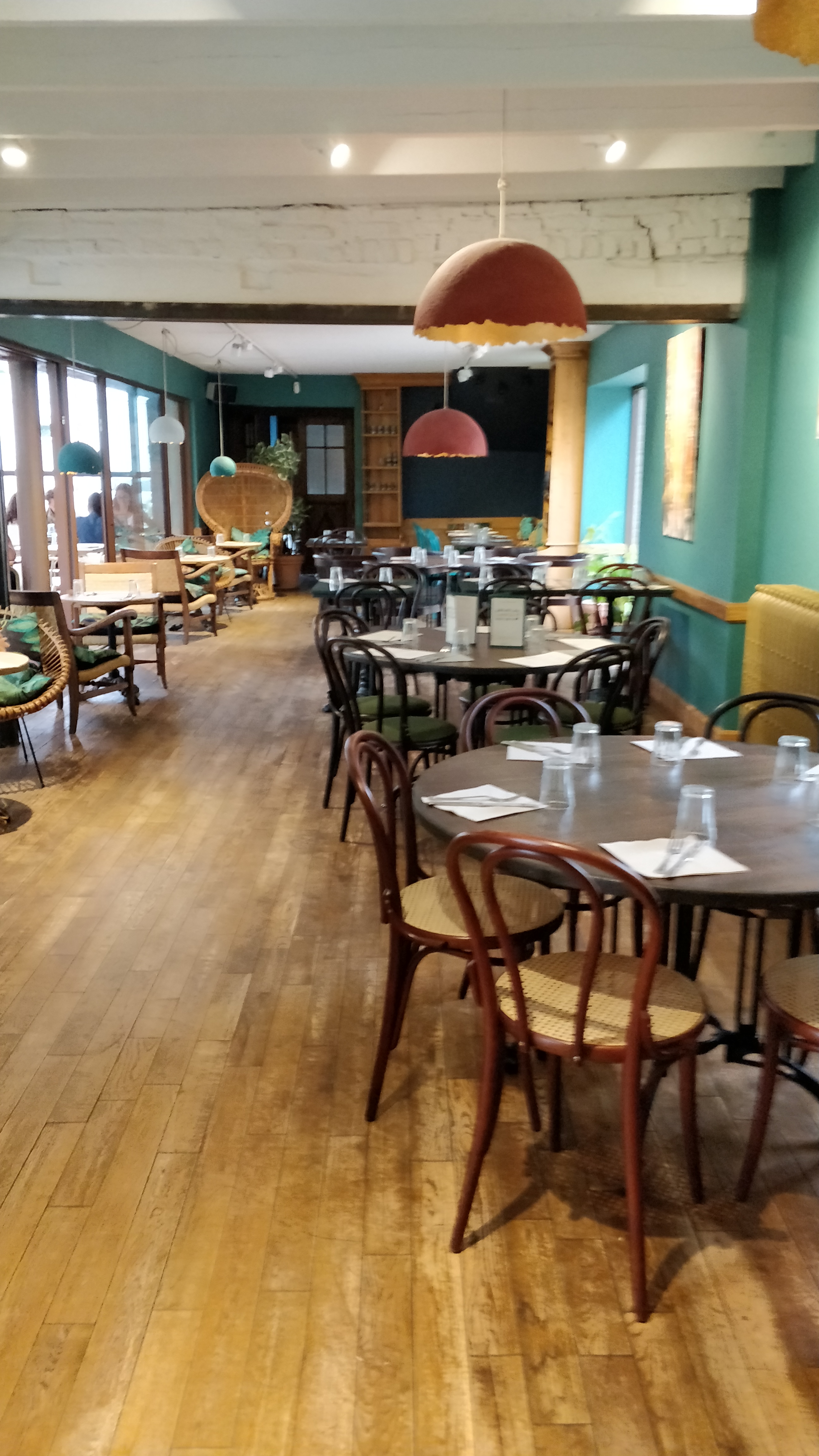 Mise à jour: J'avais été très satisfaite lors de ma visite en 2021, mais hier... Ah la la, quelle déception ! Le cadre est toujours sympa, mais... Une impression que les serveurs (nouveaux ?) ne connaissent pas les produits qu'ils servent, des erreurs sur les vins, sur un plat... Ils ont failli empoisonner une amie avec une carte ABSOLUMENT PAS FIABLE sur les allergènes... Je ne peux pas dire que mon plat était mauvais, mais pour le prix, ce n'était pas spécialement au niveau. Et à 22h30, rideau ! Ils n'ont même pas voulu servir un dernier café et sont venus nous poser les additions sur les tables ! On note quand même un effort de leur part sur l'addition pour compenser leur boulette sur l'allergène, mais ça ne rattrape pas la gravité de leur erreur, les conséquences auraient pu être gravissimes. Je pense qu'il faut former les serveurs sur cette question, qui n'ont pas l'air de savoir ou de comprendre les risques... Je ne sais pas si l'équipe a changé, mais ça n'avait rien à voir avec ma première visite. 2021: Cadre très sympa, bien mangé et accueil très agréable. Tout petit bémol : la déco est très belle, mais pas ultra fonctionnelle. Certains sièges ne sont pas très pratiques pour manger (mais confortables pour papoter ! ^^)