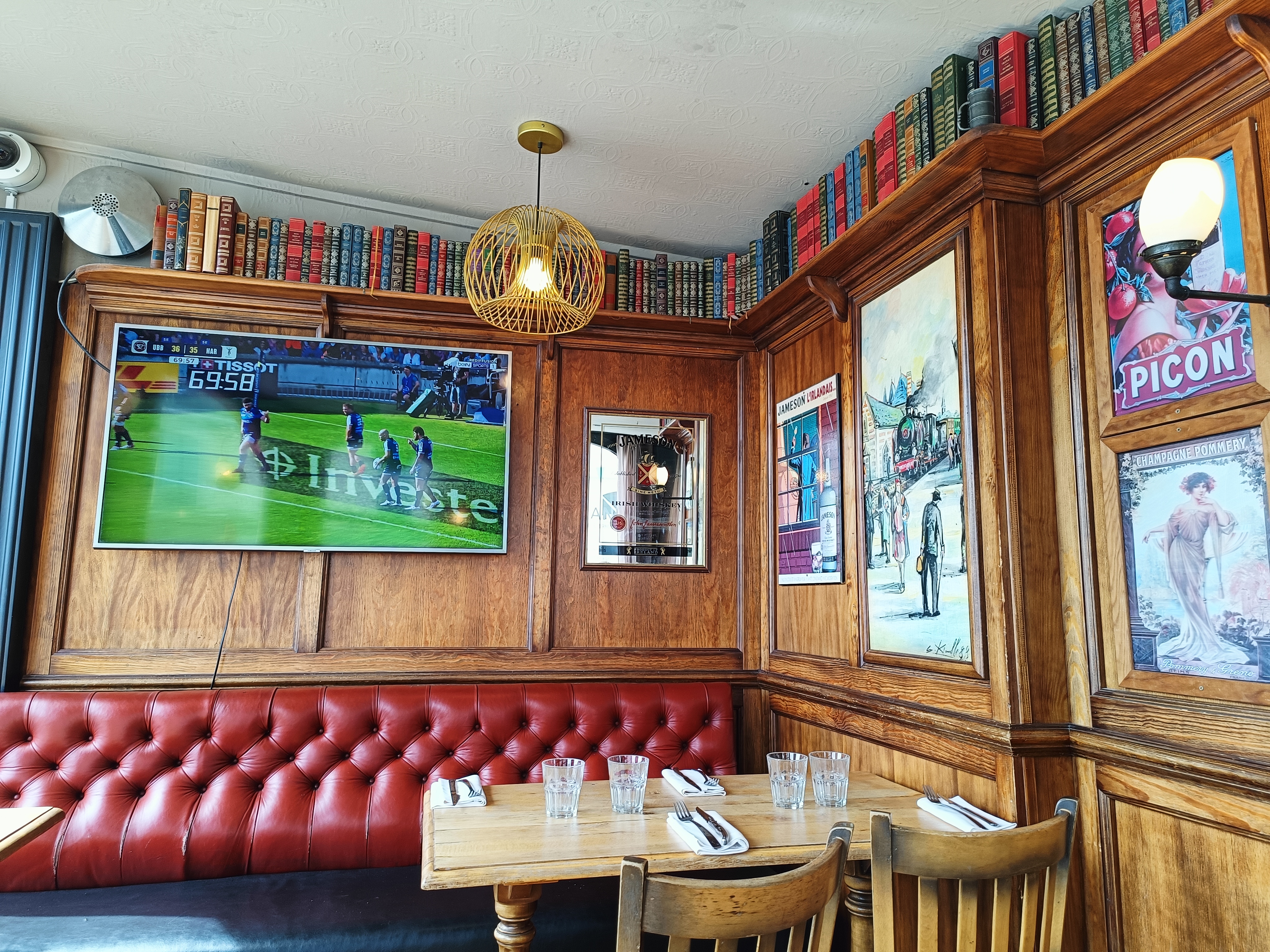 Nous avons visité le restaurant deux fois la semaine dernière pour une glace et pour le déjeuner. Même si l'ambiance était parfois un peu chaotique, elle était animée et joviale. En raison du grand nombre de clients à ces deux occasions, le service nous a été un peu lent, mais lorsqu'ils sont finalement arrivés, les deux hommes étaient gentils et efficaces et parlaient bien anglais. Le steak qu'ils ont recommandé à mon mari était très, très bon. Et ils ont eu la gentillesse de changer la chaîne sport en rugby pour lui 😊🏉🏉. Donc, avec un steak, des frites, de la bière et du rugby parfaits, il a déclaré que c'était presque un déjeuner parfait ! Mon fish and chips était bon aussi. La glace était toujours bonne. Dans l'ensemble, nous reviendrons ici si nous sommes à Vitre ou en Bretagne.