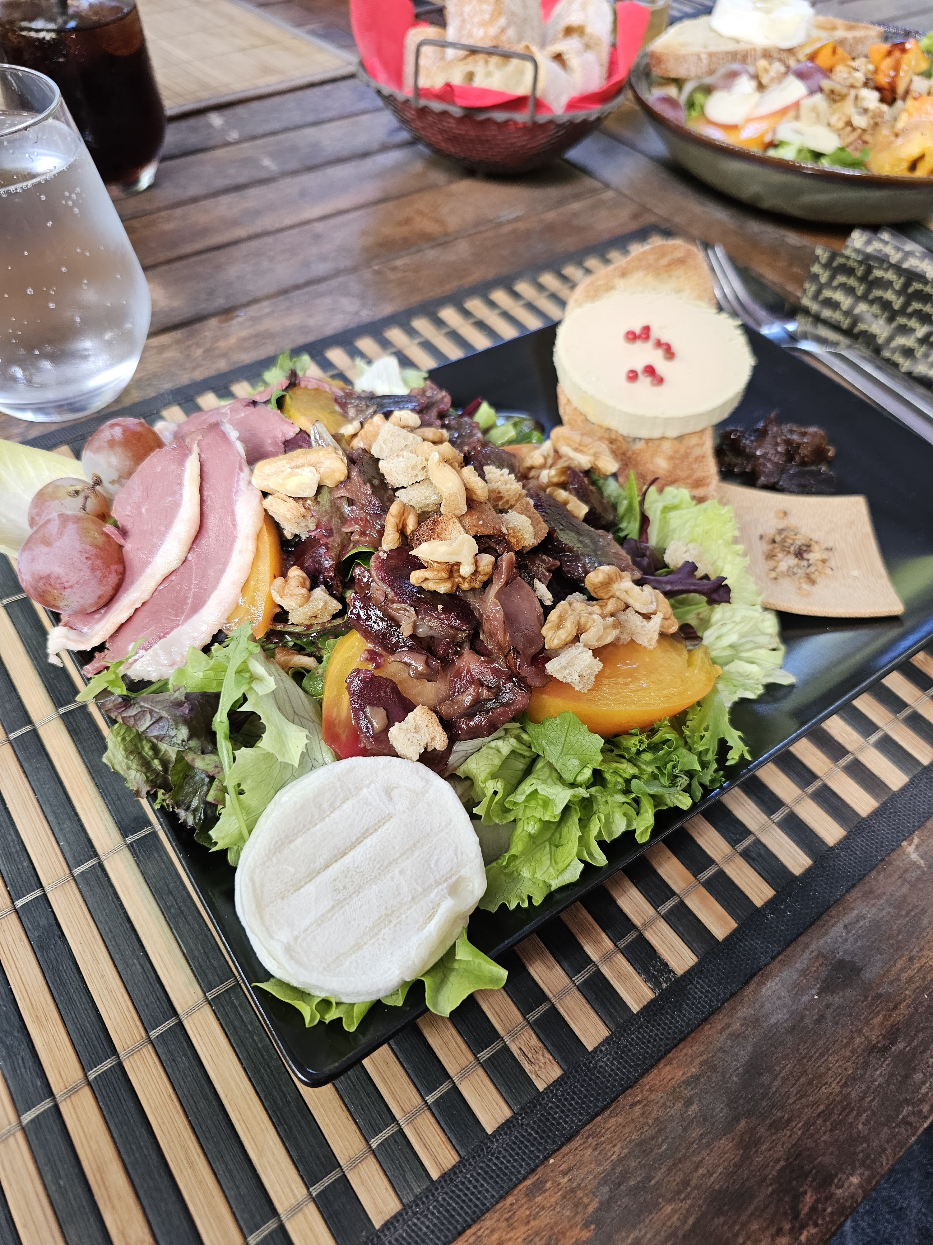 Joli cadre, serveuse très agréable. La salade périgourdine est bonne mais minuscule. On s'attendait à une salade beaucoup plus garnie pour 19€. La tranche de foie gras était deux fois plus fines que toutes celles qu'on nous a servies dans la région. Nous avions déjà pris une salade périgourdine à Sarlat et elle était deux fois plus chargée. Cette salade ne devrait pas valoir plus de 13€ (et cela comprend le cadre).