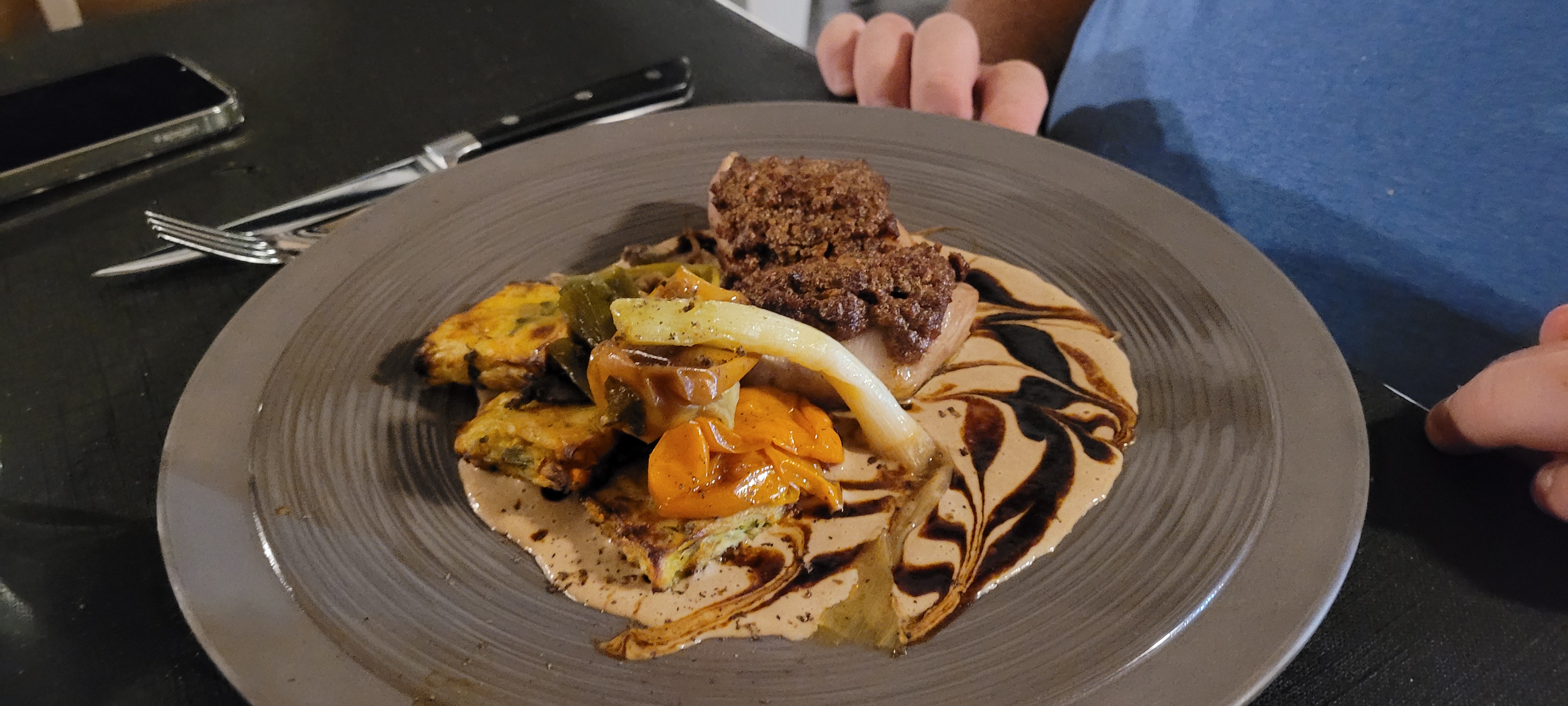 Extraordinaire, nous avons passés une merveilleuse soirée. Tarte fine avec des rougets.et un délicieux dessert. C'était parfait