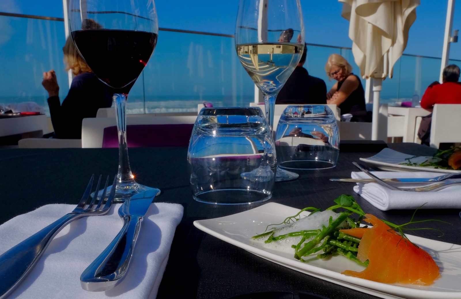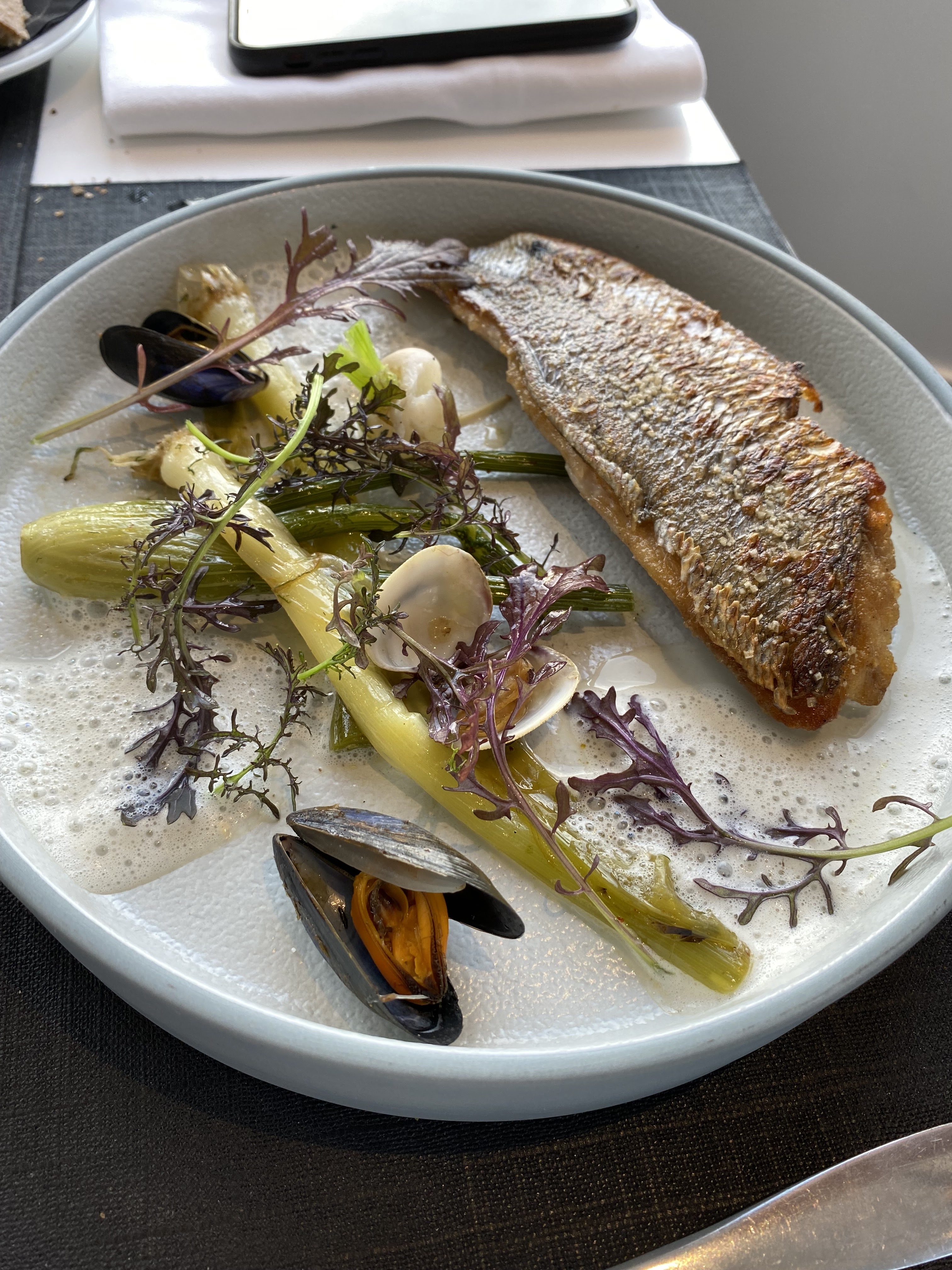 Je mets une étoile pour la vue, nous ne sommes pas dans un gastro mais un bistro ! Je pense que le chef a pris la grosse tête ! Ou alors il n'était pas là ! Les rougets, sauce beaucoup trop forte pour du poisson, on passe du légèrement épicé a du très épicé, le biscuit est sans intérêt et les légumes sont inexistants sauf une petite carotte! L'autre poisson est limite existant dans l'assiette, et l'accompagnement est comme l'autre, donc absent. Quand on se croit être un grand restaurant, les miettes de pains doivent être ramasser après le plat principal, on doit éponger la mare d'eau autour du sceau a champagne avant que l'on en ai sur les genoux, les vitres avec vue sur l'océan devrait être propre.... Enfin bref ça ne vaut pas le prix !!!!! Seule la vue est très agréable.