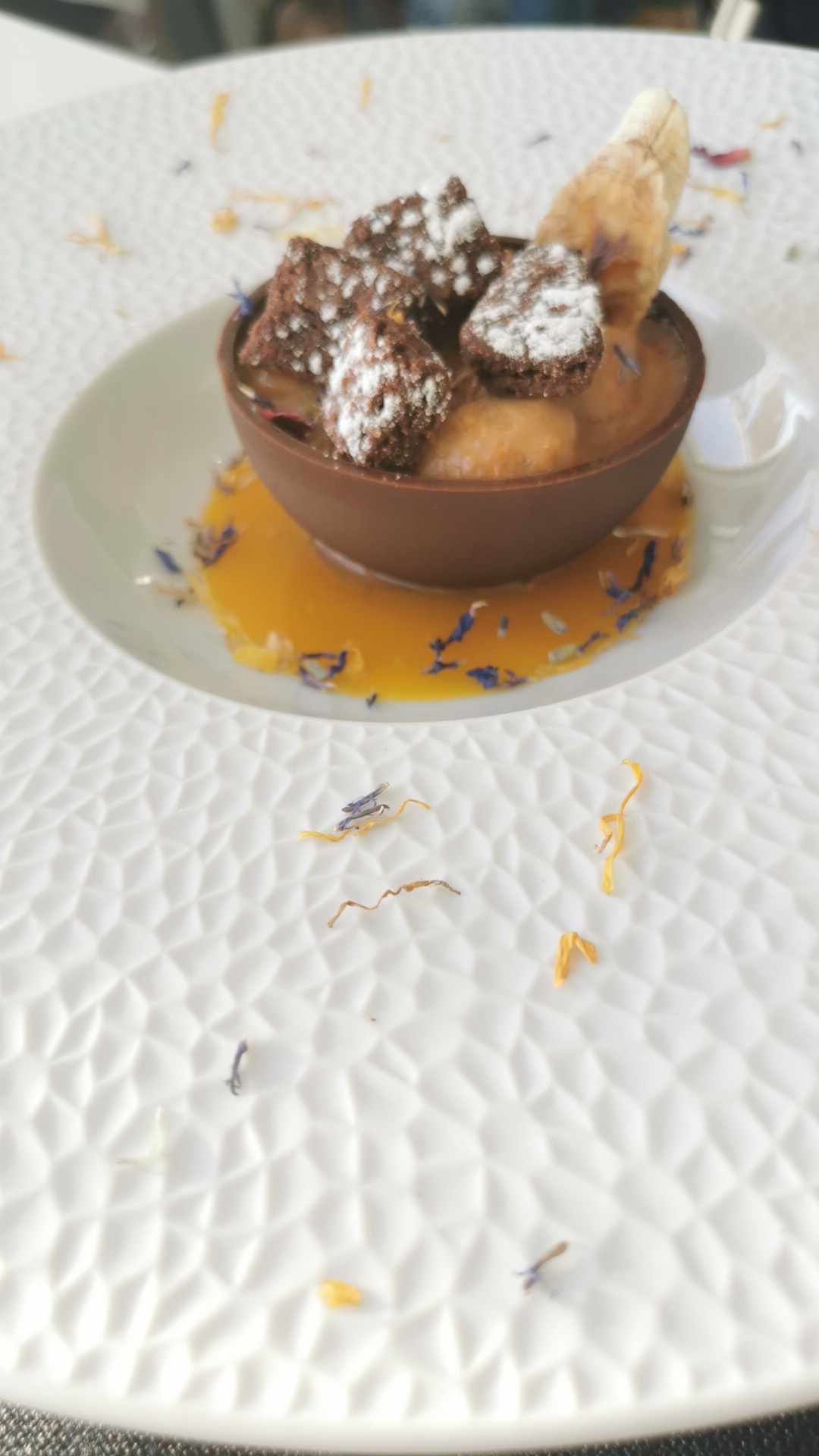 Très décevant. Vous payez la vue mais sûrement pas la qualité de la cuisine. Oeuf parfait pas cuit, taloa de chipirón immangeable cela n'avait aucune consistance, toute une mixture mélangée sur le taloa avec un très fort goût de fumé qui prenait toute la place. Pour le dessert glace banane très très sucrée et glace vanille sans aucun goût. Un service impeccable mais aucune mise en bouche offerte avec l'apéritif. Bref pour un restaurant de ce standing avec une addition en rapport, ce n'est vraiment pas à la hauteur.