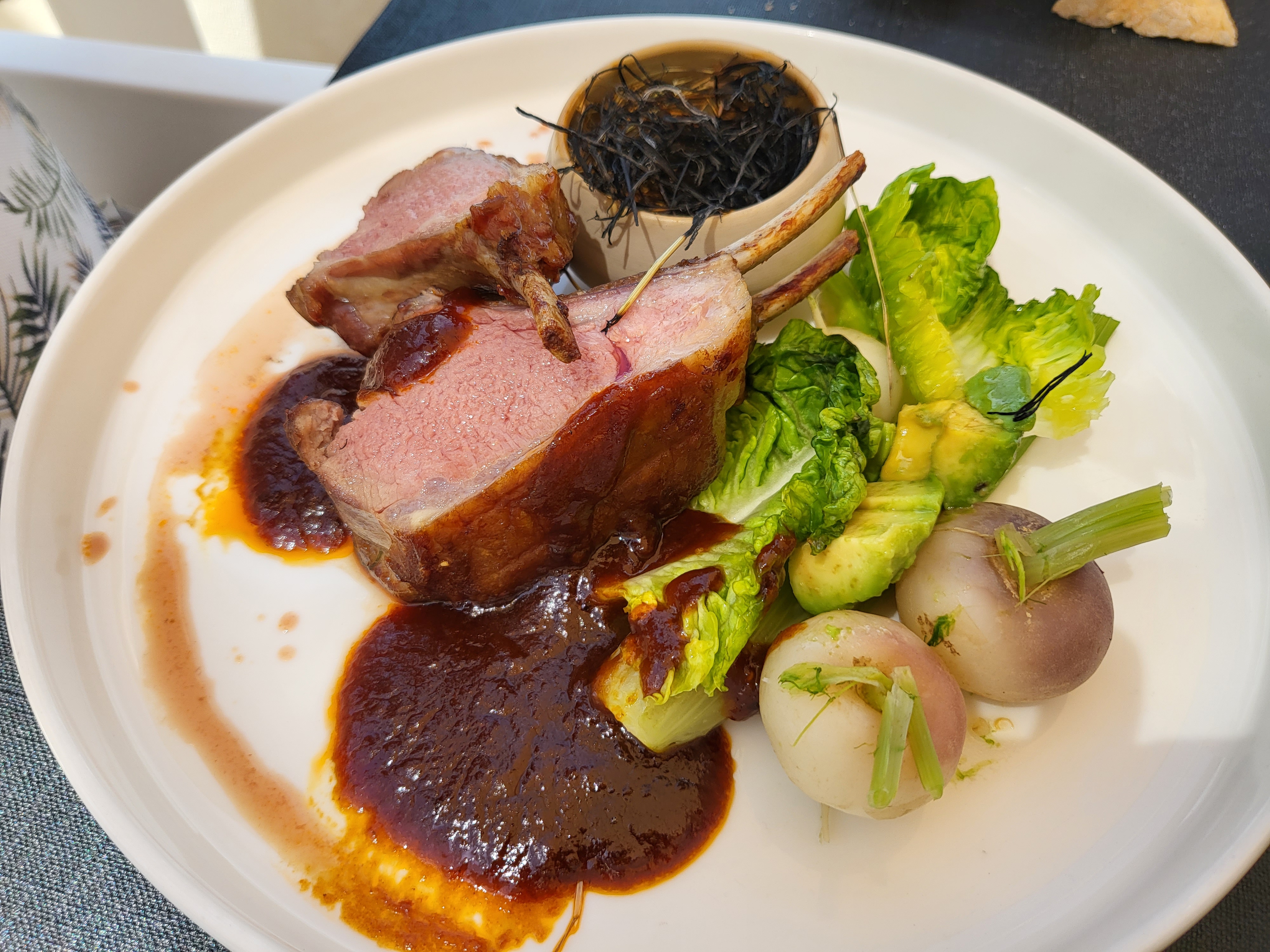 Un cadre sans aucun doute magnifique accompagné d'une vue surplombant l'océan. Peut-être serait-il possible d'améliorer les plats et de les complexifier un peu ? Il est certain que dans ce cadre nous attendons que les plats soient un peu plus raccords. Mes encouragements.