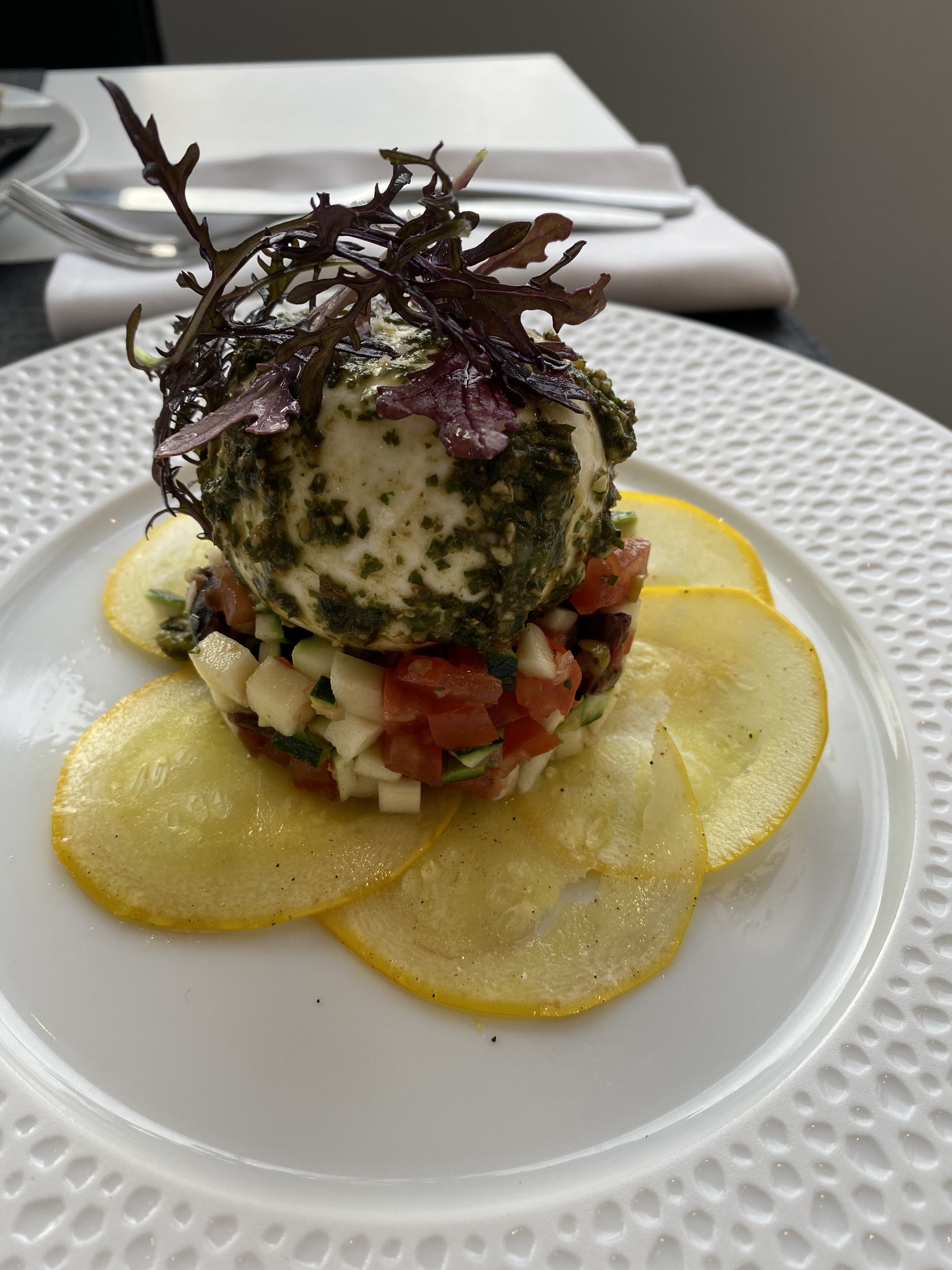 Nous avons choisi ce restaurant pour célébrer l'anniversaire de notre fils, mais malheureusement, notre expérience ne fut pas à la hauteur de nos attentes. Nous avions effectué une réservation spéciale pour marquer l'occasion, demandant qu'une bougie soit placée sur le dessert de notre fils. Malheureusement, cette demande spéciale a été complètement oubliée par les serveurs. Le service dans son ensemble laissait à désirer. Lorsque mon mari a tenté de faire face à son intolérance à certains aliments en demandant à modifier quelques ingrédients dans son plat, il s'est vu refuser cette simple demande par la serveuse, sans qu'elle ne prenne la peine de se renseigner pour savoir si cela était réalisable. Ce manque de flexibilité a été décevant et peu professionnel. Quant à la nourriture, les plats étaient loin d'être exceptionnels. Ils manquaient de saveur et de créativité, ce qui est surprenant pour un restaurant se vantant d'être gastronomique. Nous nous attendions à des plats raffinés et savoureux, mais malheureusement, cela n'a pas été le cas. Le seul point positif était effectivement la vue, qui était magnifique. Cependant, cela ne suffit pas à compenser les lacunes dans le service et la qualité de la cuisine. Rapport qualité prix à revoir. Prix trop élevés.