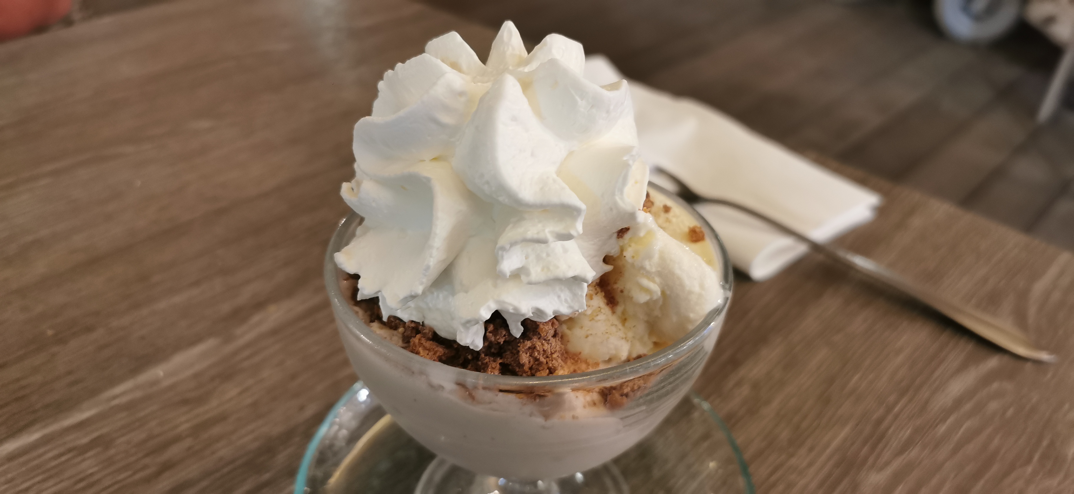 atmosphère incroyablement boueuse et désagréable. Nous avons acheté des glaces pour toute la famille et nous sommes assis aux tables du café qui n'étaient pas aménagées. Le propriétaire est venu peu de temps après et a exigé que nous partions. Non merci, votre visite n'aura pas lieu. Allez plutôt au joli bar à glaces sur la place.