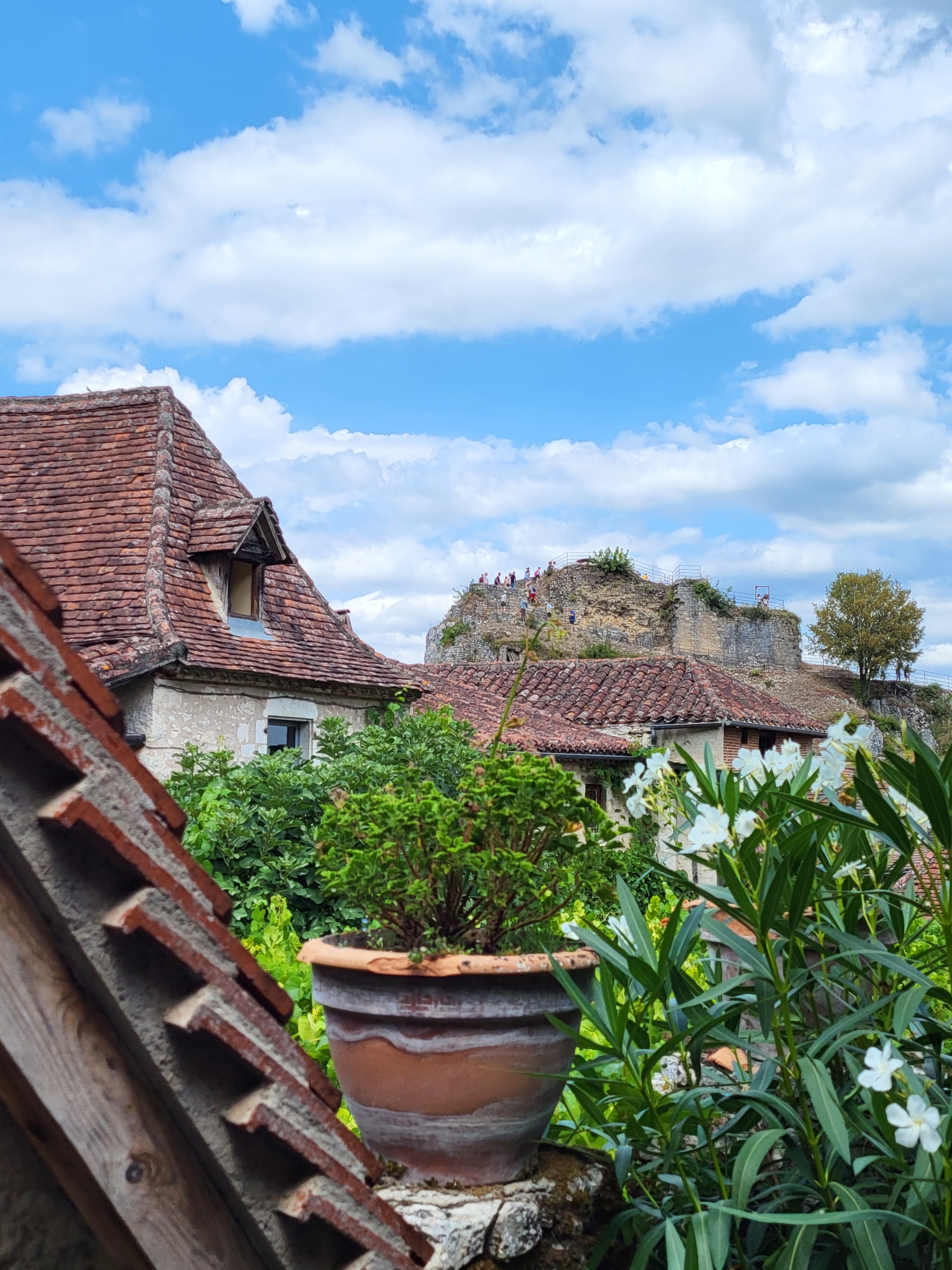 Pause déjeuner bien agréable sur la terrasse ombragée et fleurie surplombant les toits de St-Cirq. Accueil très sympathique. Salade excellente. NB : toujours une gamelle d'eau pour nos amis à 4 pattes et table à langer dans les sanitaires.